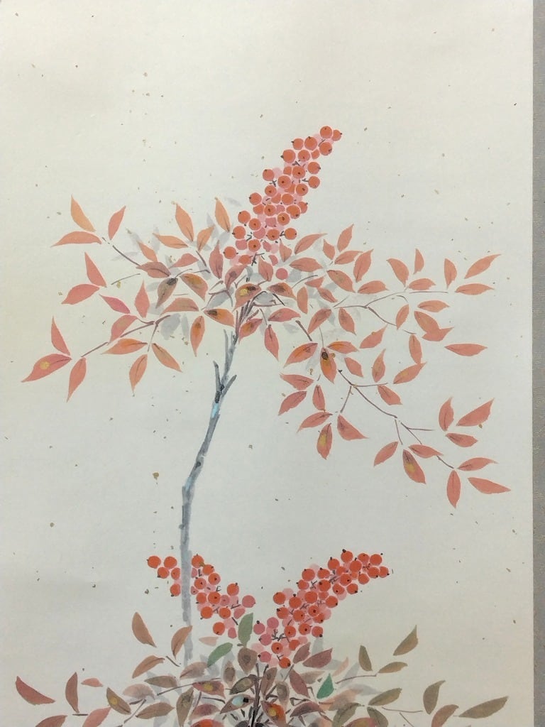 佐藤純吉|SATO Junkichi( 徳島/ 1955- ) 「南天」現代作家中古掛軸 共箱 正月 めでた掛 早春 冬 年末 年中/普段掛け 魔除け 縁起物 無事祈願 日本画 JY2201