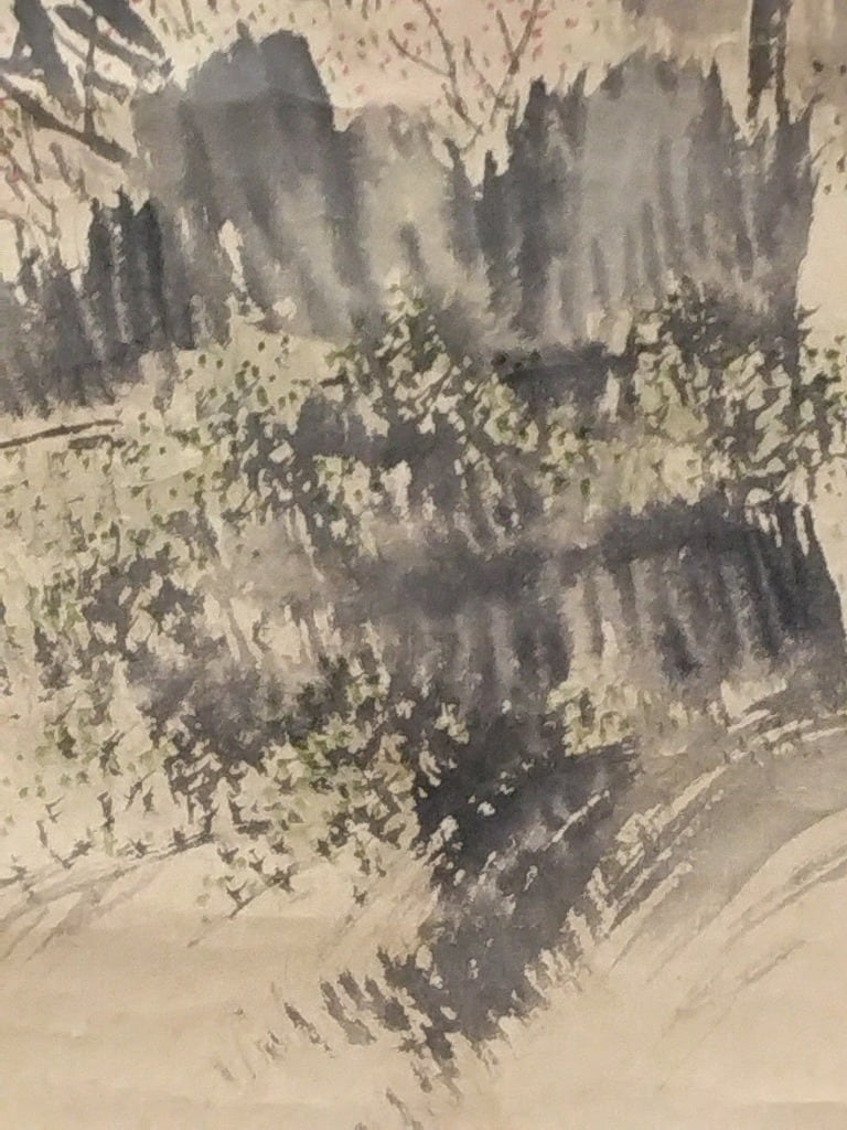深田 直城(FUKADA Cyokujo/滋賀‐京都‐大阪‐兵庫,1861‐1947) 「柳桃の里」木箱 年中/普段掛け 日本画 JY2204