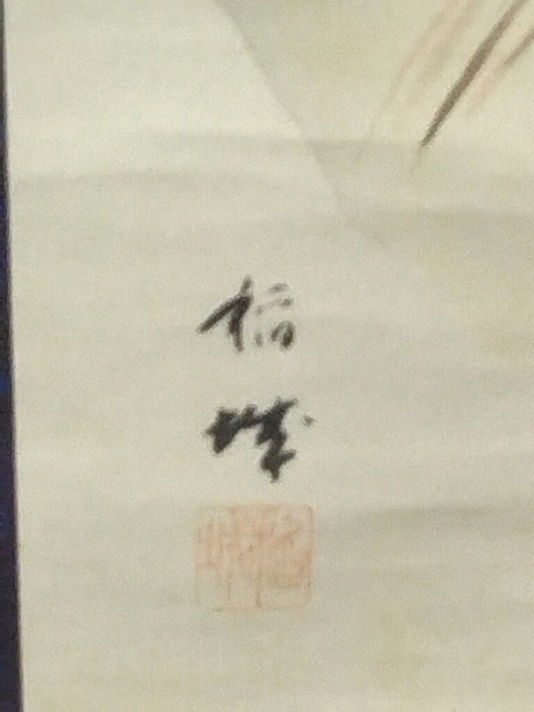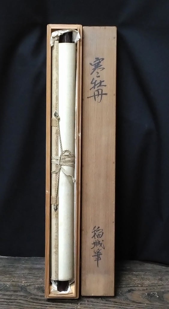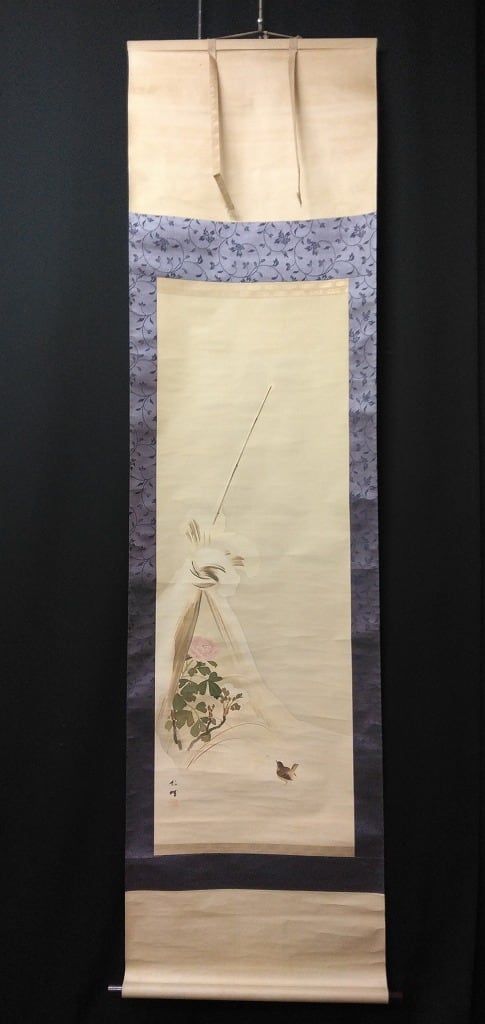 福岡稲城|FUKUOKA Tojo( 愛知/ 1899-?)「寒牡丹」土佐派/大和絵 尺五立物故作家掛軸 木箱 JY2210