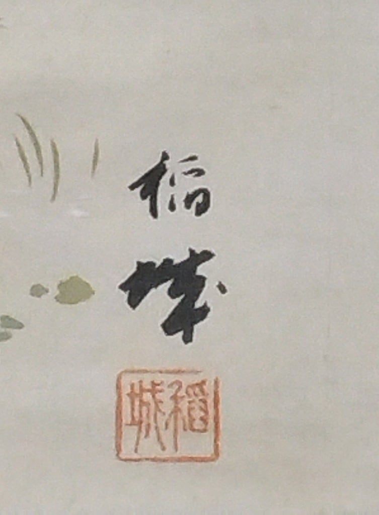 福岡稲城|FUKUOKA Tojo( 愛知/ 1899-?)「桜花見図」土佐派/大和絵 尺五立物故作家掛軸 木箱 JY2211