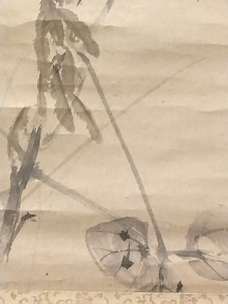 深田 直城(FUKADA Cyokujo/滋賀‐京都‐大阪‐兵庫,1861‐1947)「豌豆(蜻蛉)」半切行灯物故作家掛軸時代 木箱 春 初夏/普段掛け 縁起物 モダン掛軸 茶道具 /立礼席/寄付き/待合掛 煎茶道 日本画 彼岸 法事掛 花鳥画 水墨画 JY2214