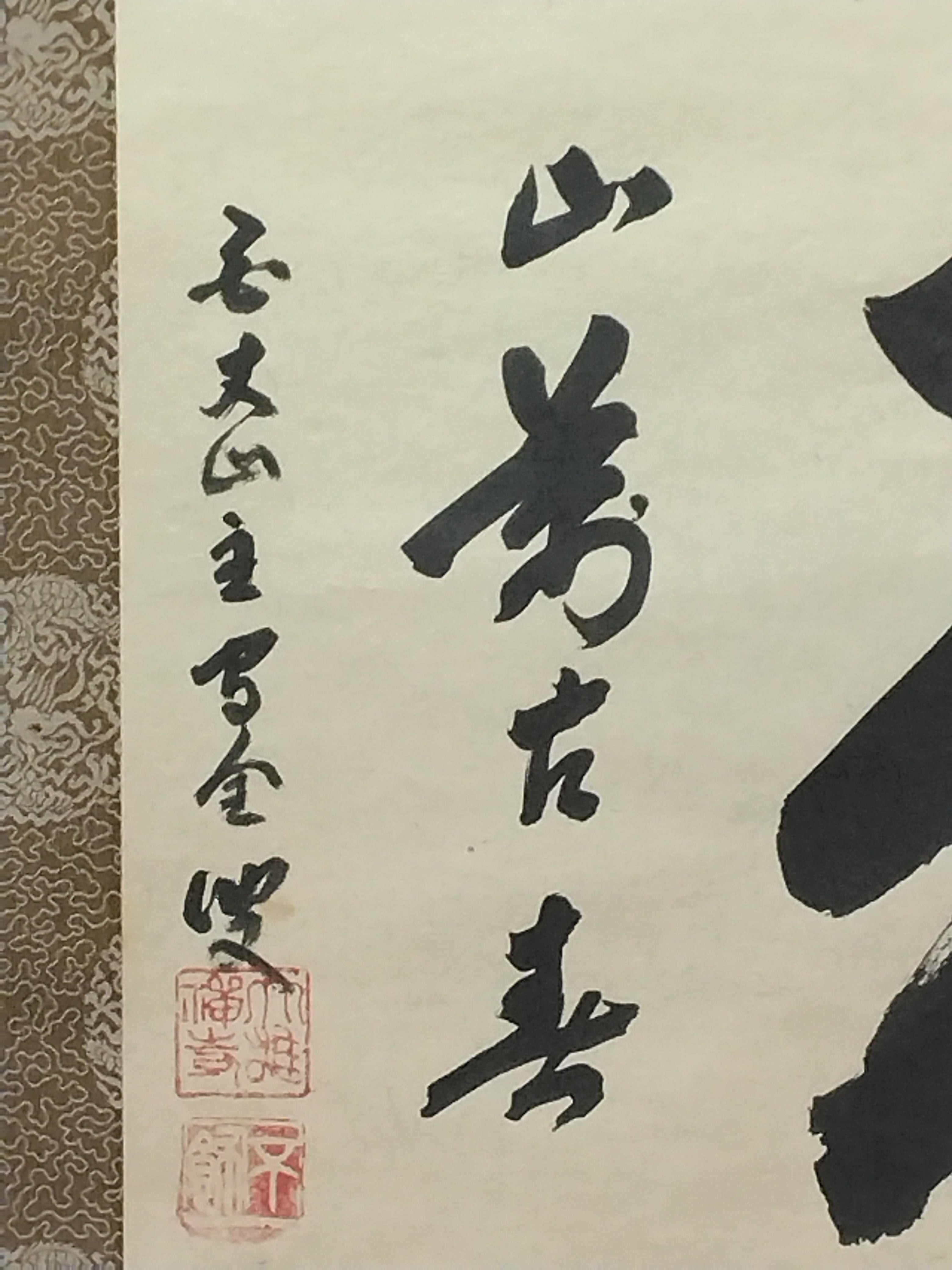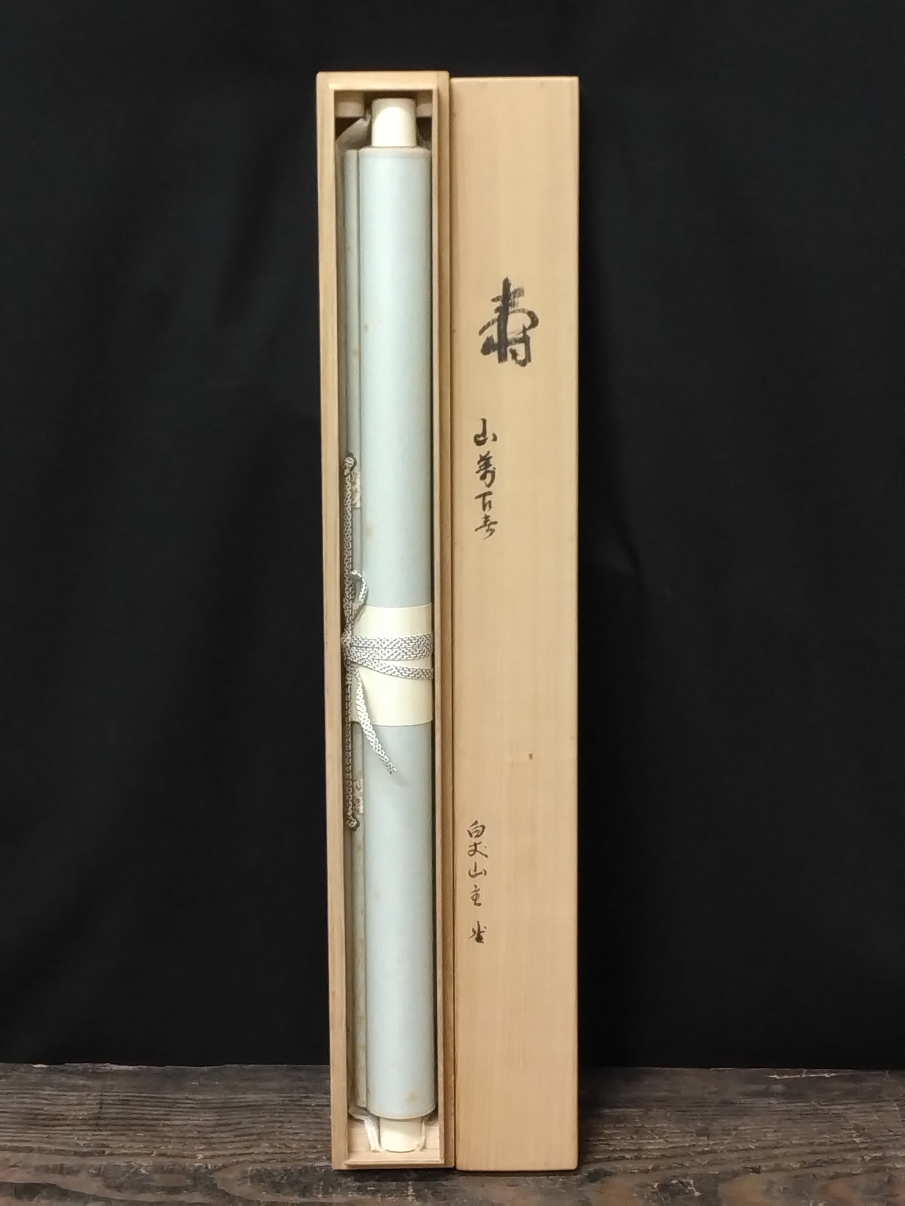昭和の名僧 臨済宗百丈山大雄寺 木村宗純|DAIOJI-temple//KIMURA Soujun(岡山, 昭和-1980年代頃) 一行書「寿山萬古春」 尺八横 物故作家掛軸 木箱 めでた掛 早春 春 節分 /普段掛け 節句掛 縁起物 禅語 モダン掛軸 茶道具 書/calligraphy 墨蹟 一行物 本席掛 煎茶道 盆栽掛 香道 華道 JY2229