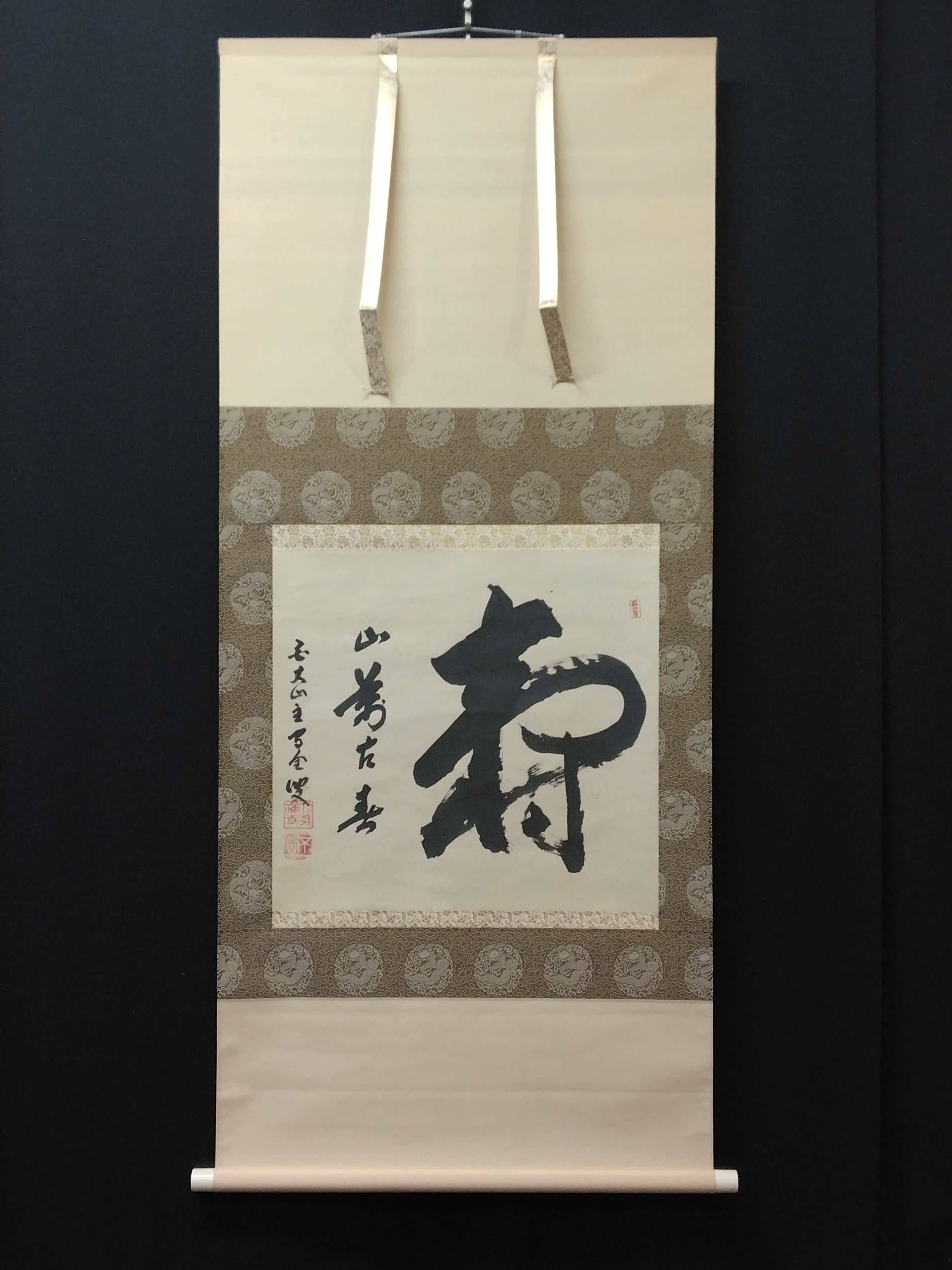 昭和の名僧 臨済宗百丈山大雄寺 木村宗純|DAIOJI-temple//KIMURA Soujun(岡山, 昭和-1980年代頃) 一行書「寿山萬古春」 尺八横 物故作家掛軸 木箱 JY2229