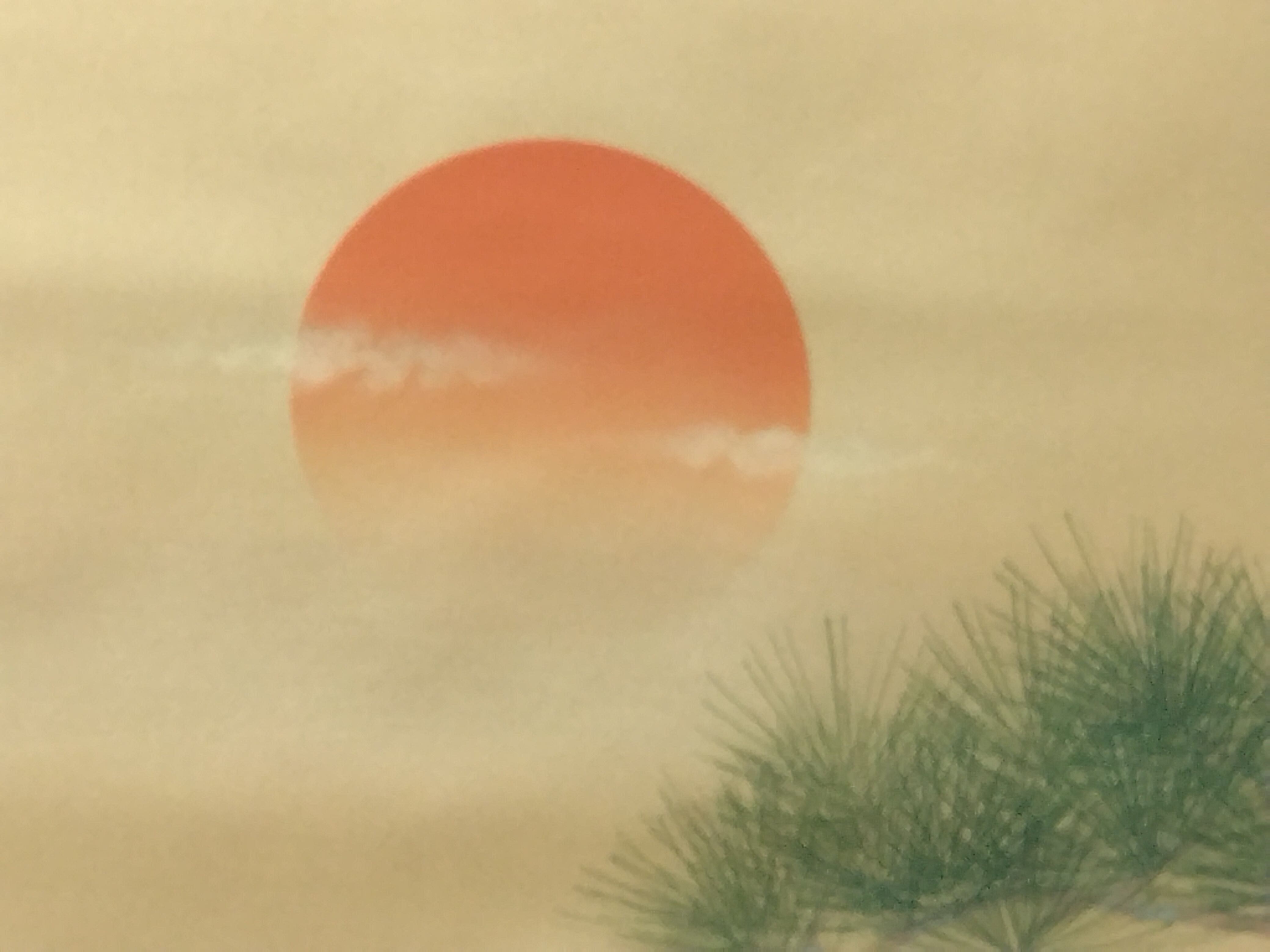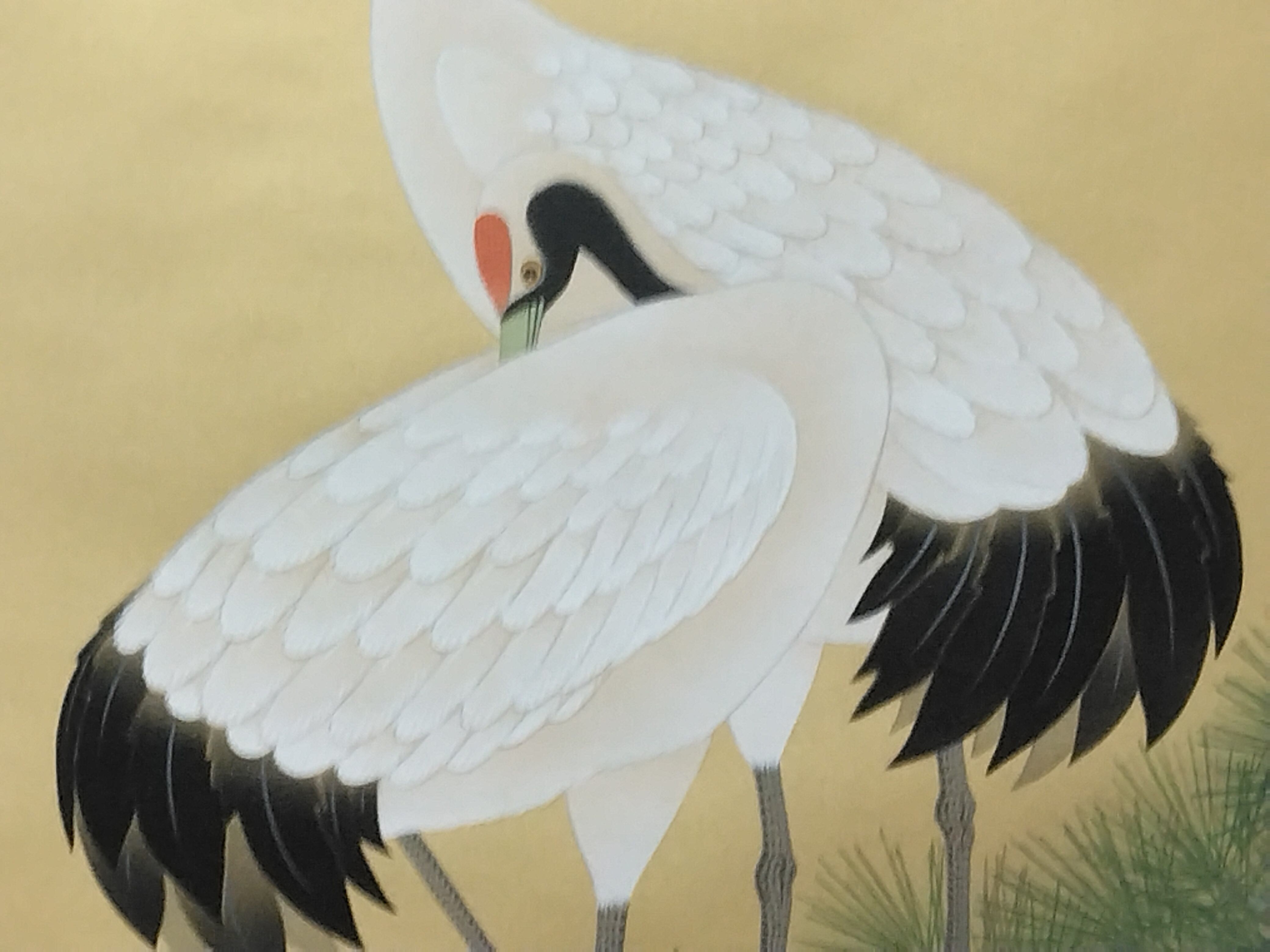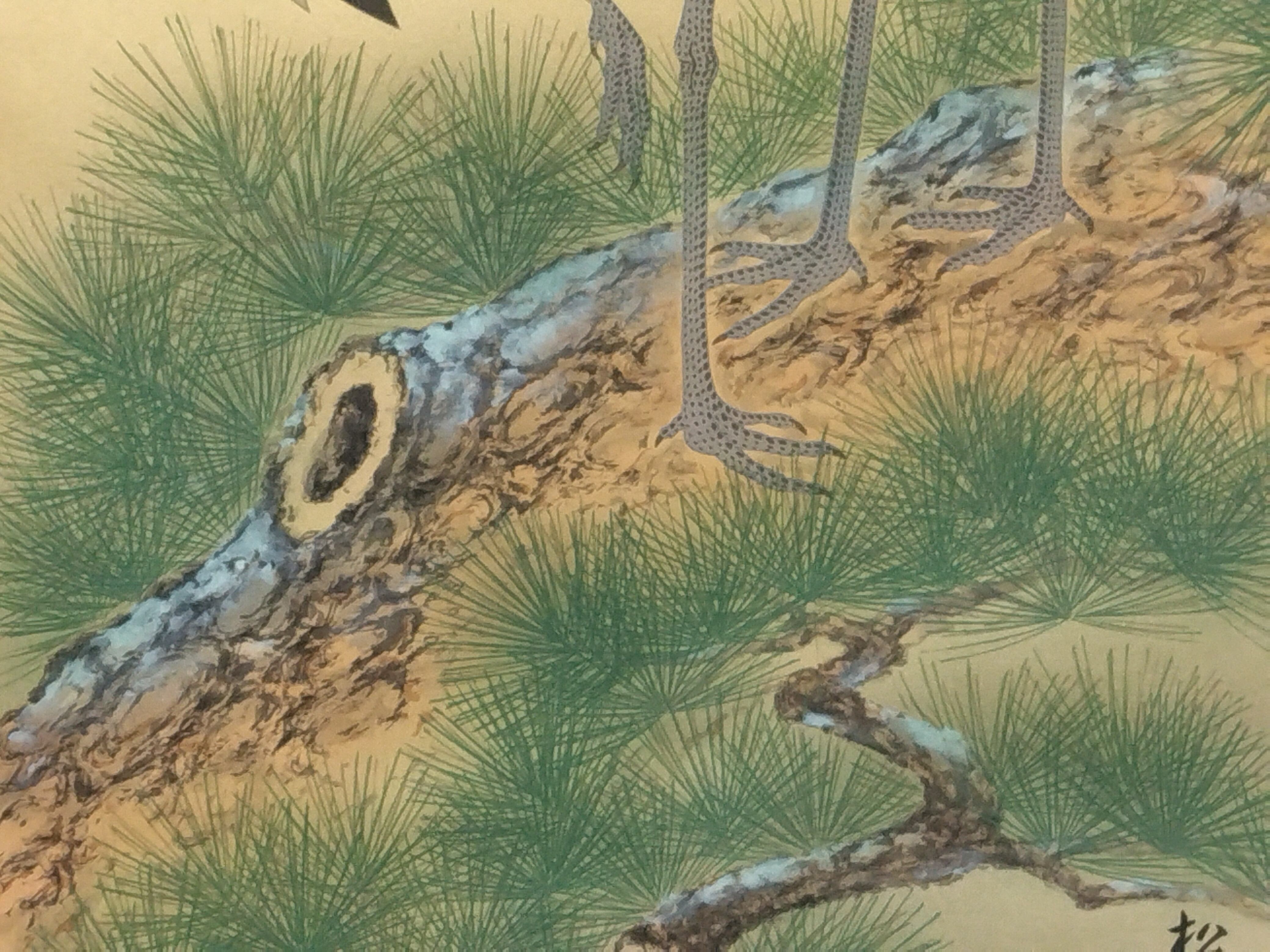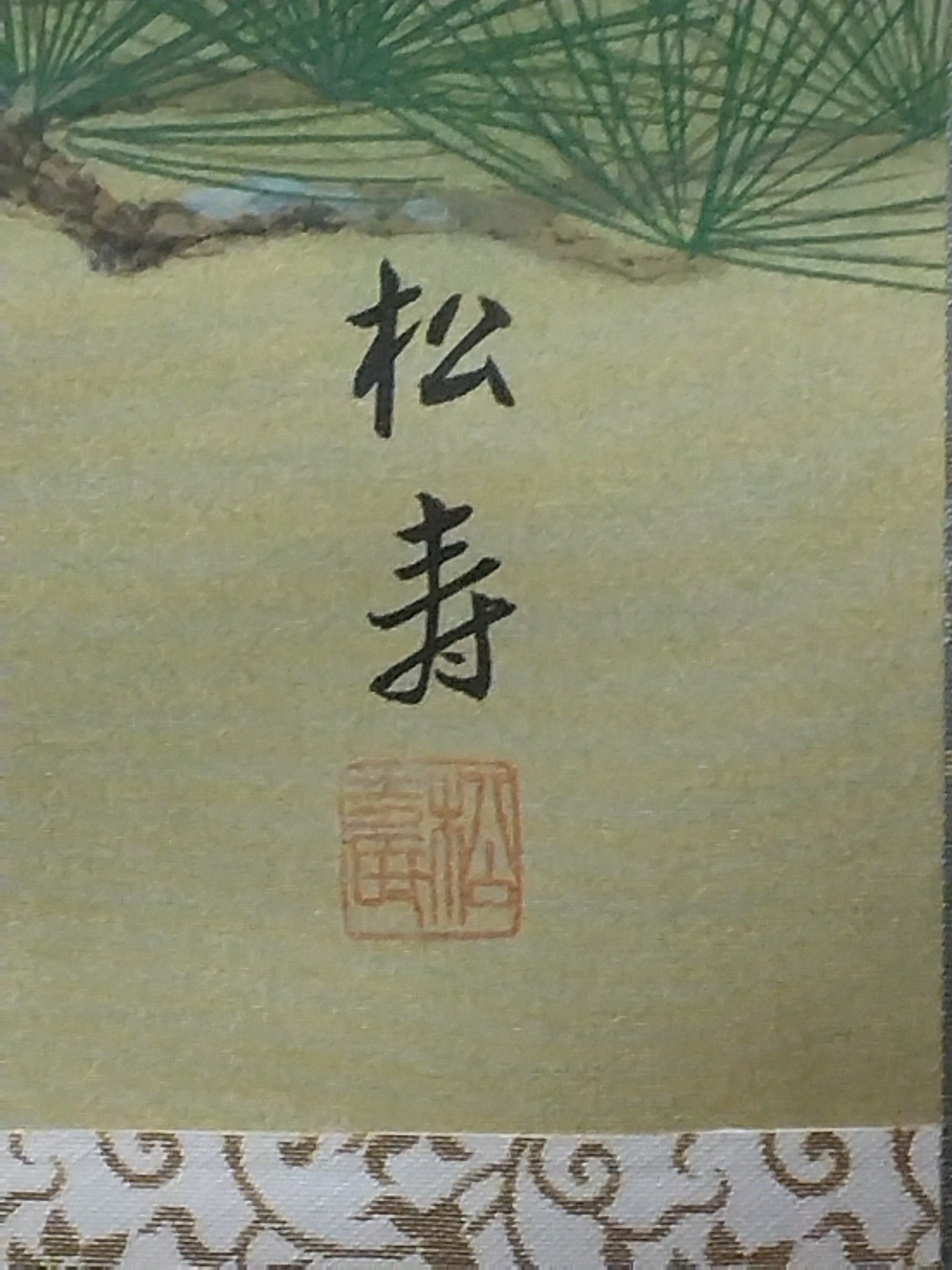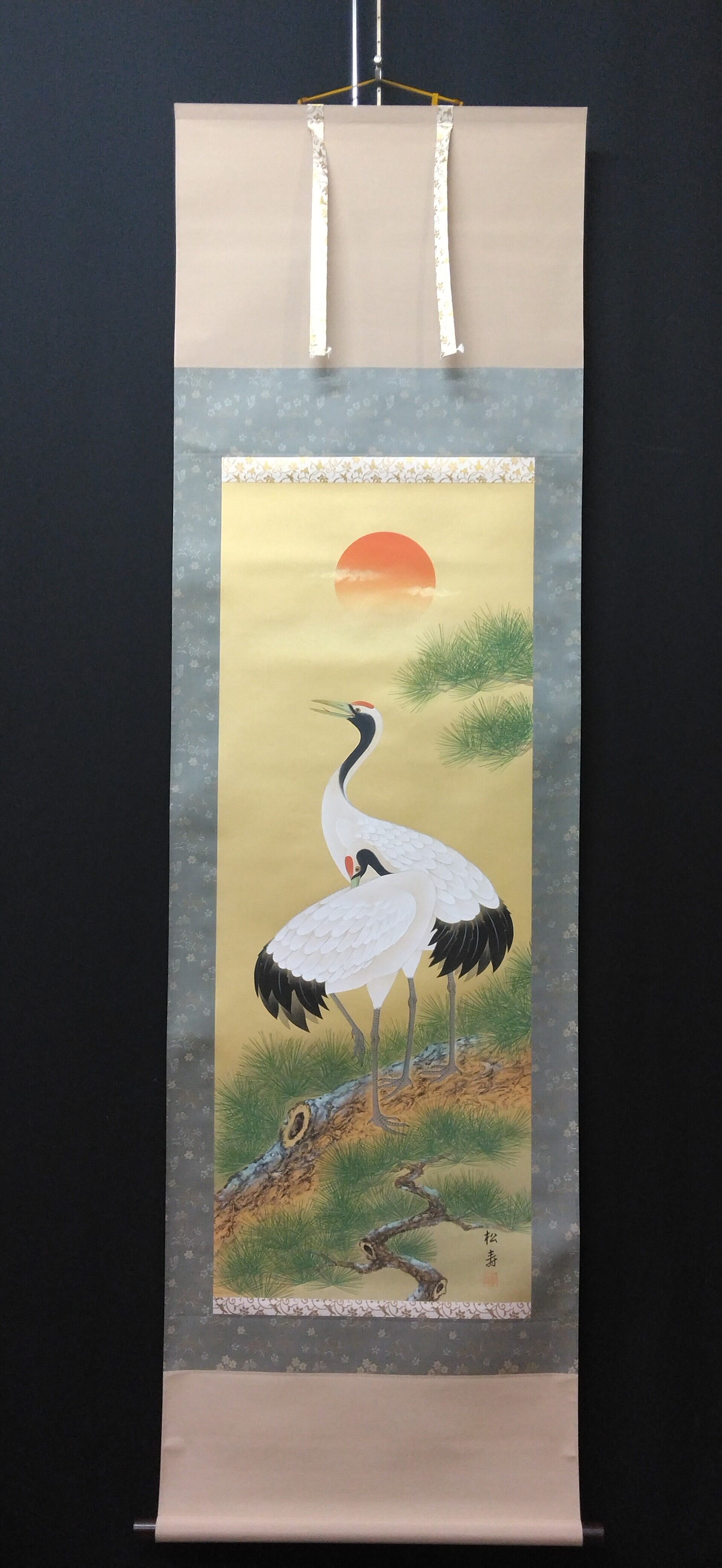 上杉松寿|UESUGI Syoju( 岐阜/ 昭和-平成期) 「松上双鶴」尺五立現代作家中古掛軸 共箱 JY2233
