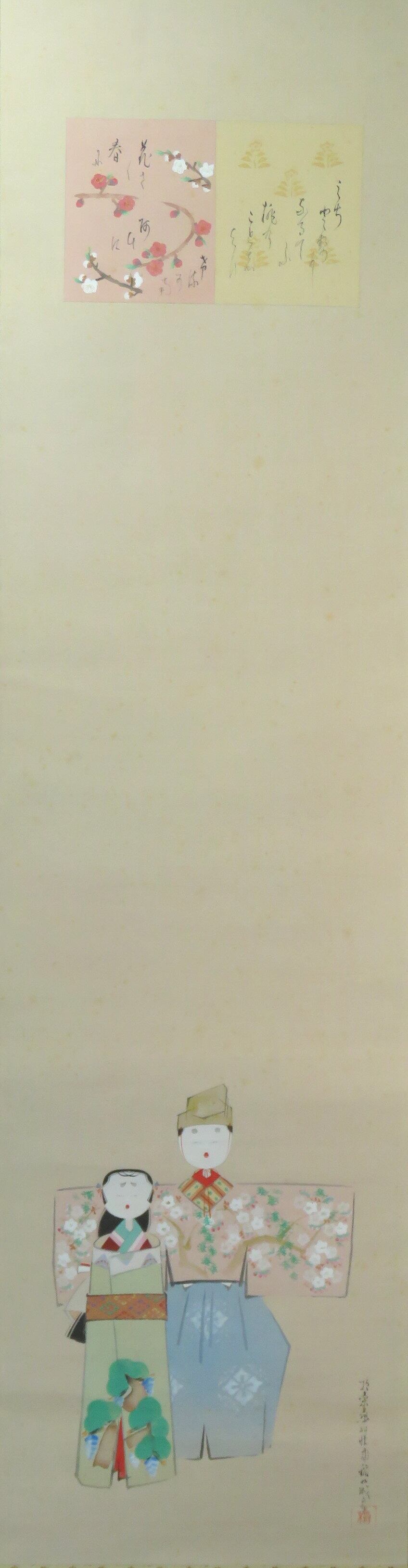 掛軸 内田稲葉 ひな 半切立 物故作家掛軸 JY1554