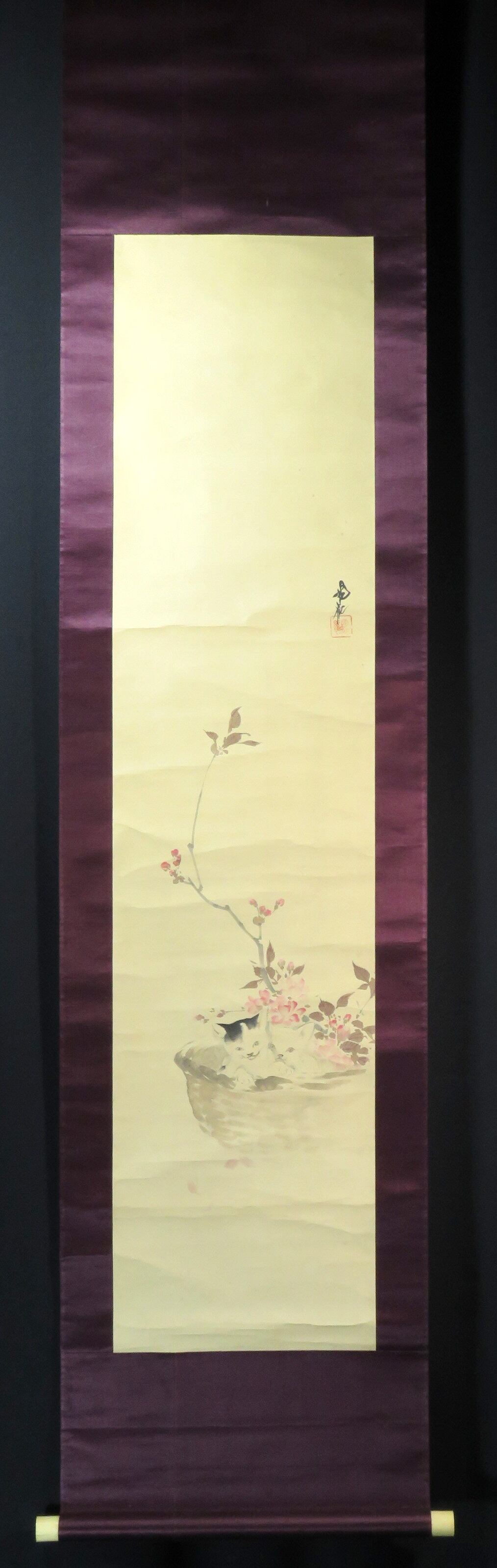 掛軸 尾竹國観(新潟) 猫 半切立 物故作家掛軸 JY1556
