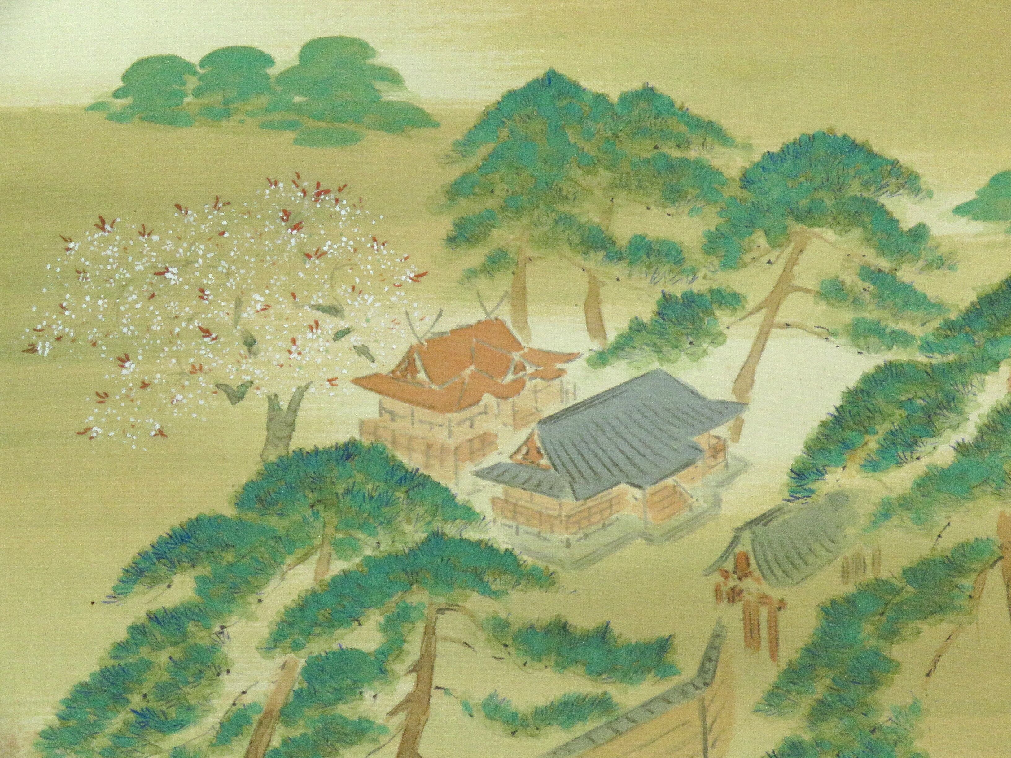掛軸 須磨夏郷 呉服(くれは) 神社之景 尺五横 物故作家掛軸 JY1566