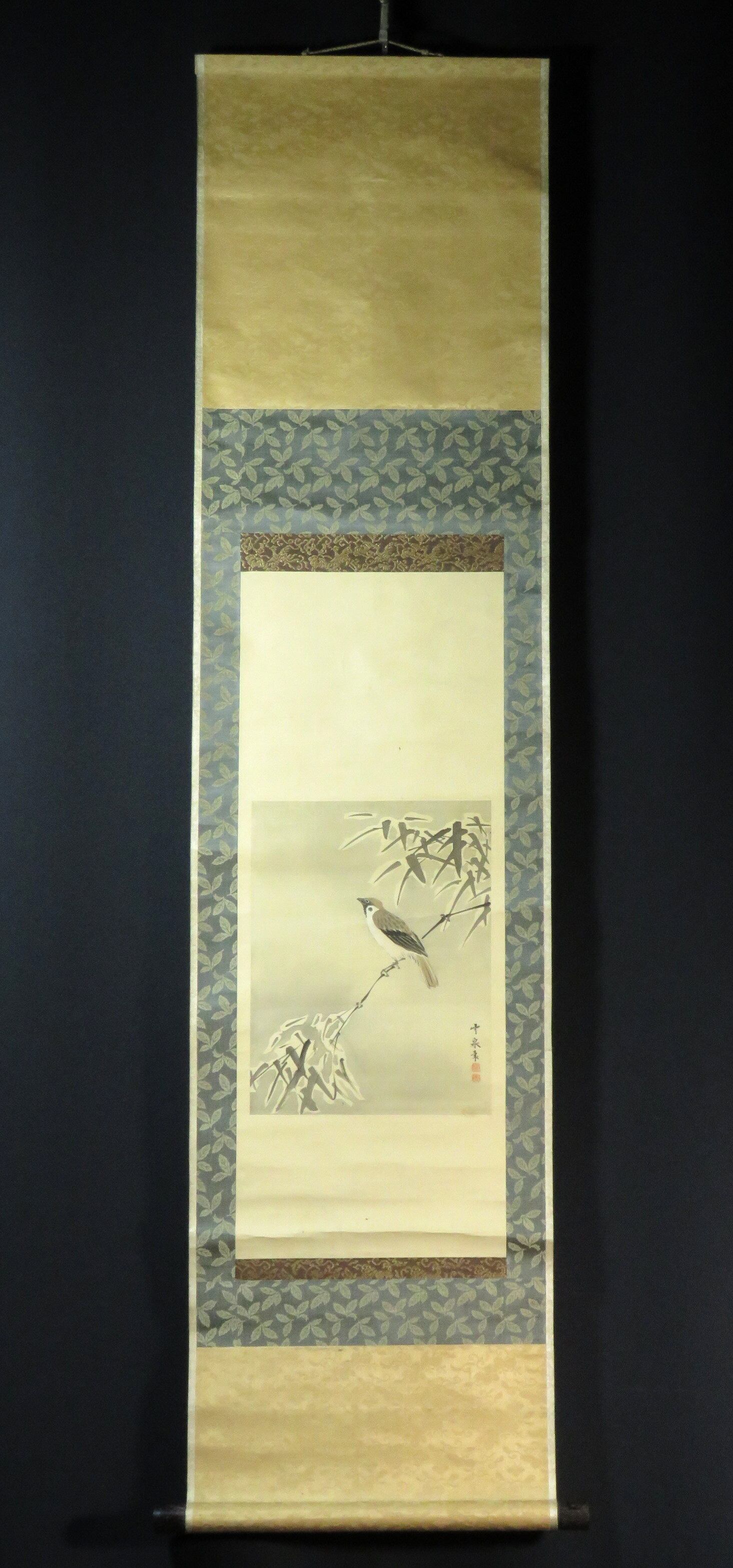 掛軸 小山雲泉 竹雀図 尺巾 物故作家掛軸 JY1579