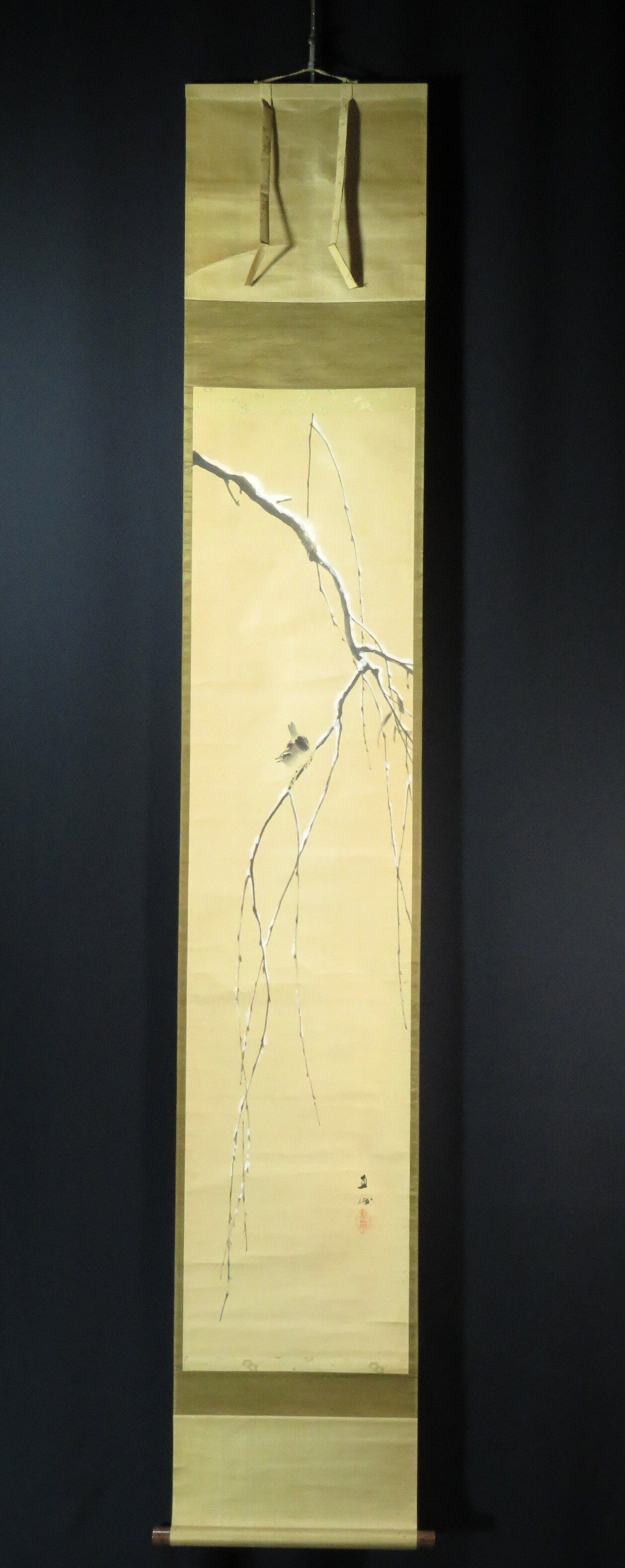 掛軸 深田直城 雪柳 春告鳥 半切立 物故作家掛軸 JY1580