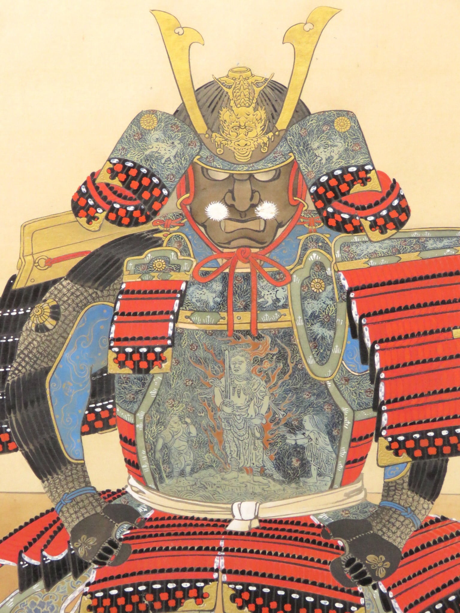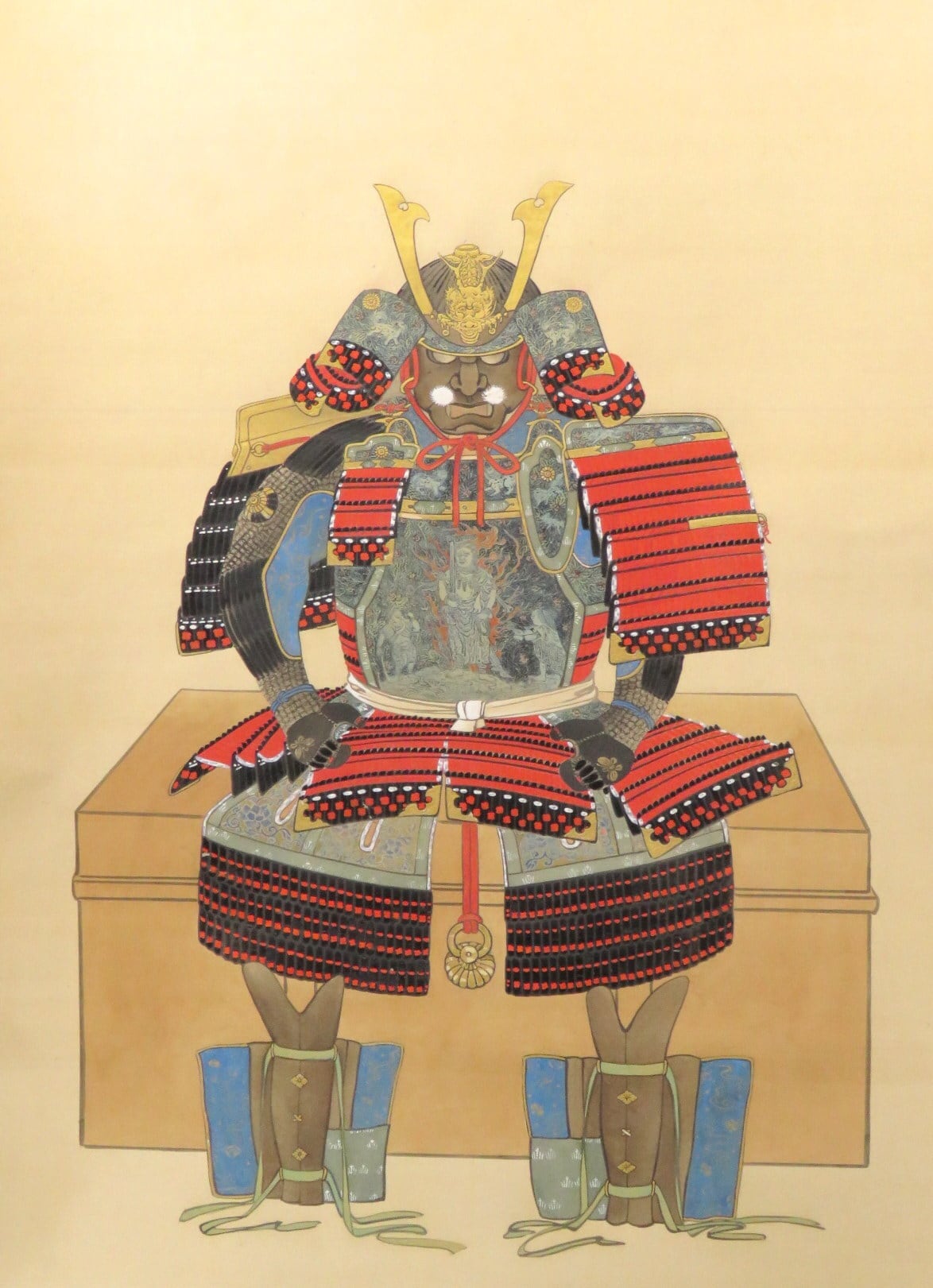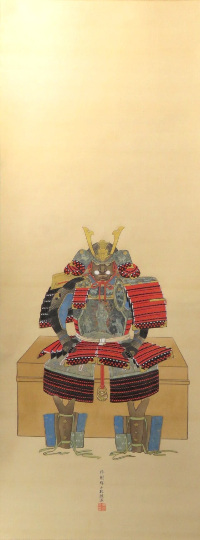 掛軸 庭山耕園 具足之図 尺五立 物故作家掛軸 JY1137