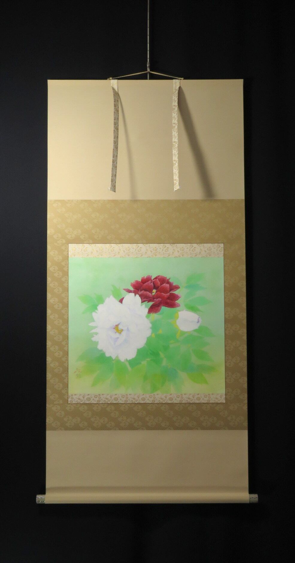 掛軸 山本敦史牡丹 尺八横 現代作家 新作掛軸 JY1157