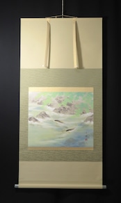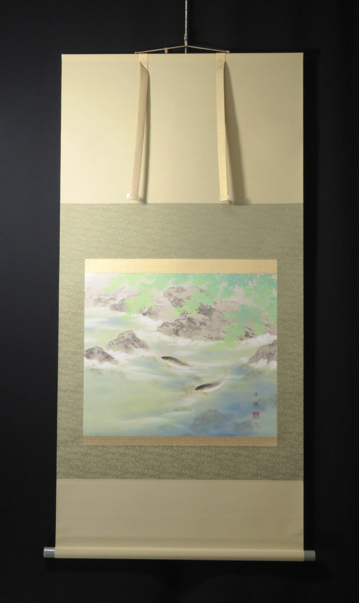 掛軸 出口華鳳 鮎 尺八横 現代作家 新作掛軸 JY1170