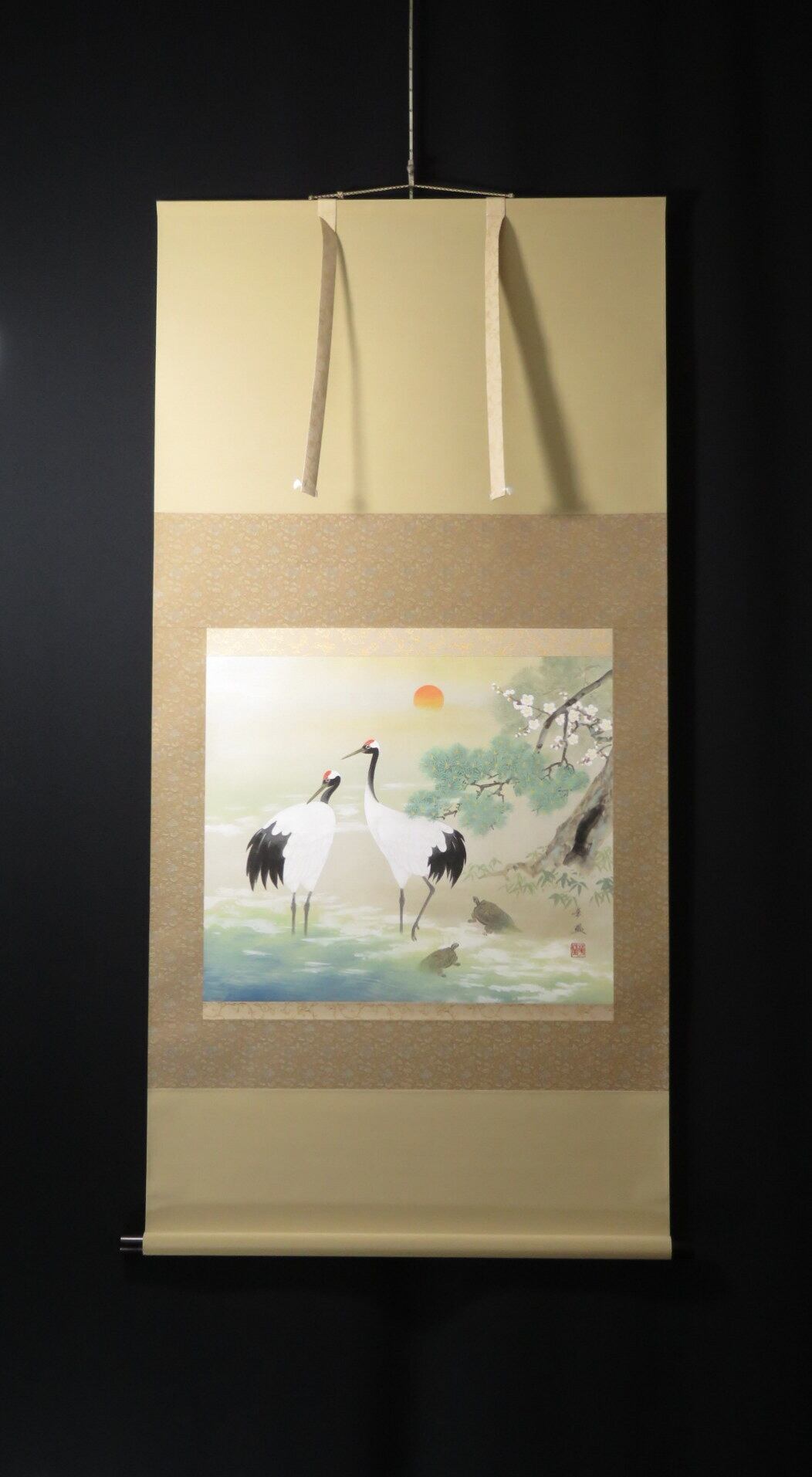 掛軸 出口華凰 松竹梅鶴亀 尺八横 現代作家 新作掛軸 JY1171-9