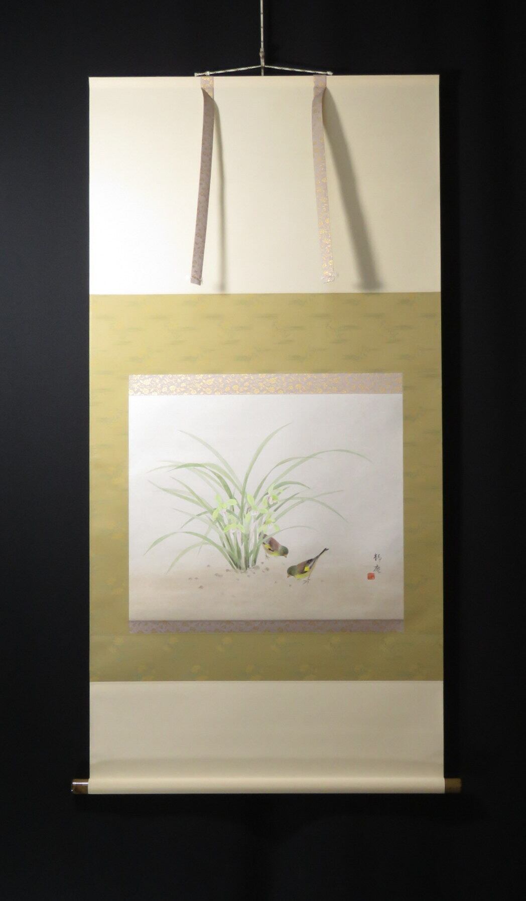 掛軸 塚下静庵 春蘭 尺八横 現代作家 新作掛軸 JY1172