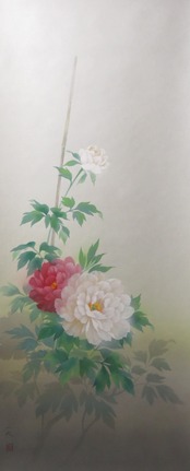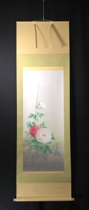 掛軸 遠田一成 牡丹 尺五立 現代作家新作掛軸 JY1177