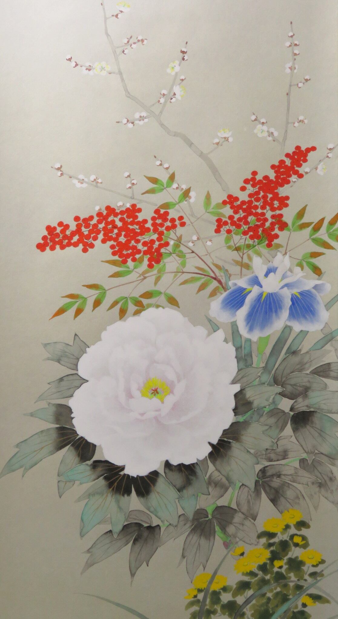 掛軸 島田稔明 四季草花 尺五立 現代作家新作掛軸 JY1179-9