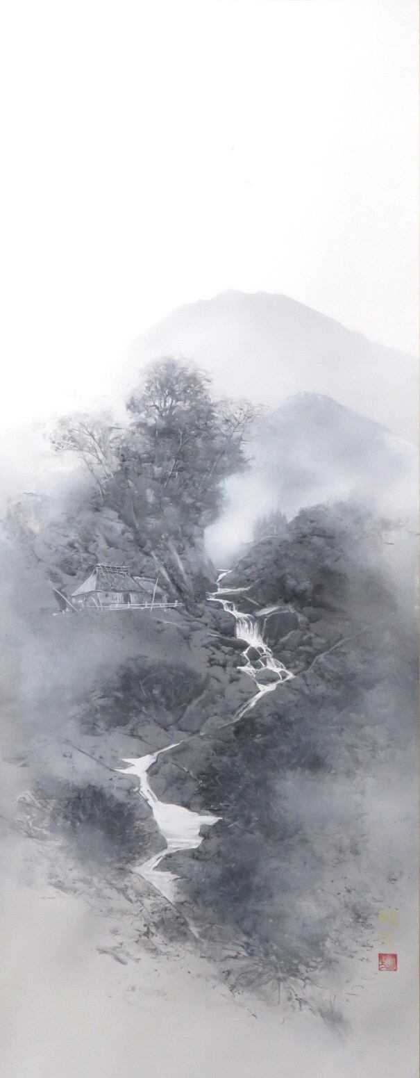 掛軸 坂本明芳 雲烟谿水(水墨山水) 尺五立 現代作家新作掛軸 JY1187-9