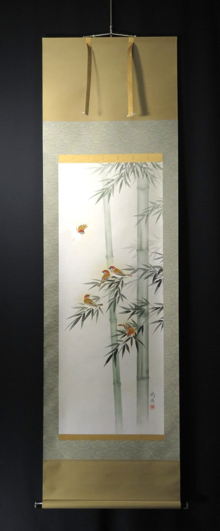 掛軸 島田稔明 竹林群雀 尺五立 現代作家新作掛軸 JY1195-9