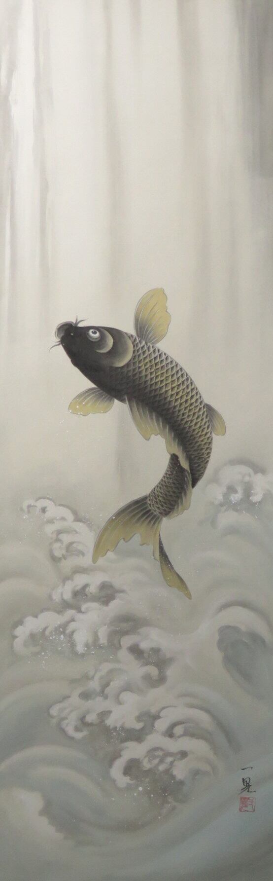 掛軸 寺田一晃 昇鯉 半切立 現代作家新作掛軸 JY1198