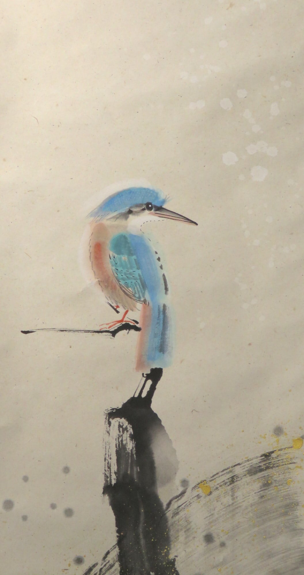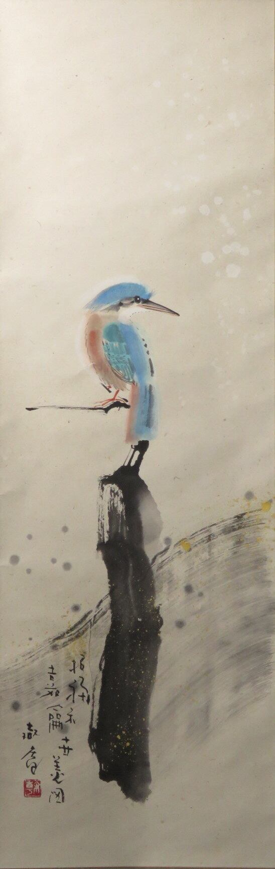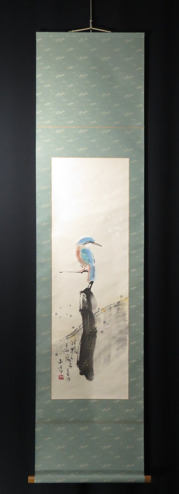 掛軸 宮本幹太 嘉龢世美(カワセミ) 半切立 現代作家新作掛軸 JY1201-9