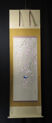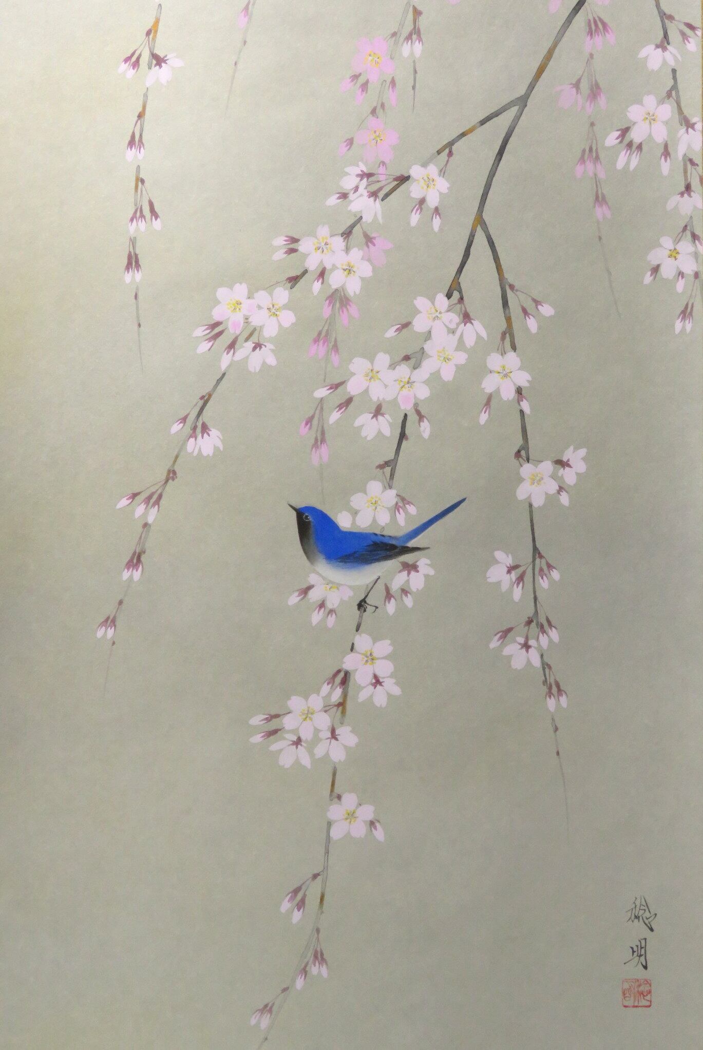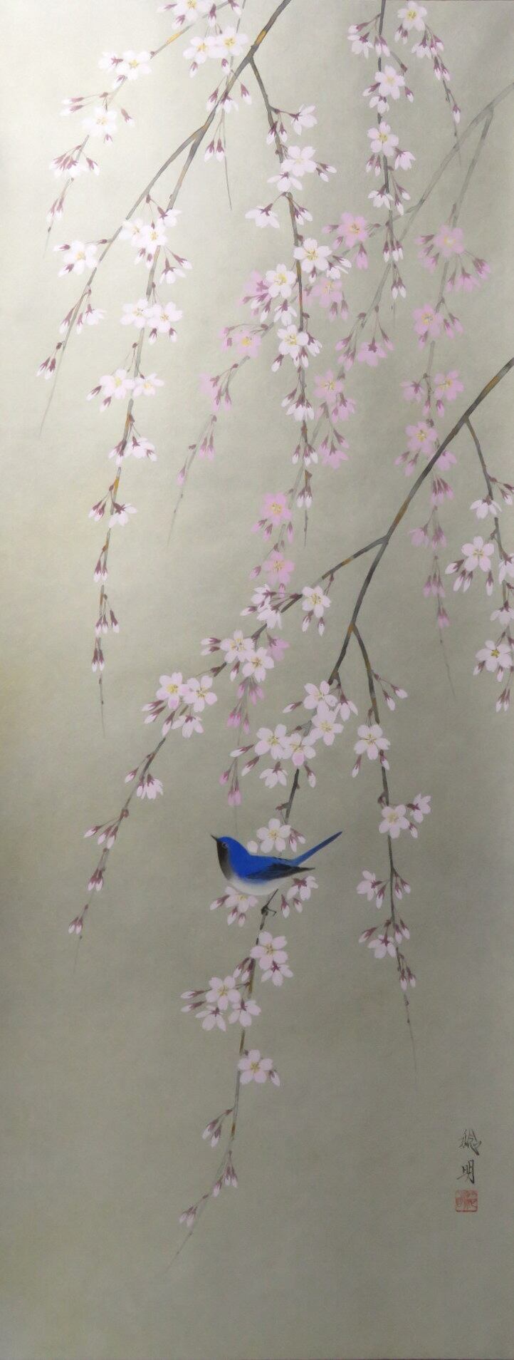 掛軸 島田稔明 枝垂桜 尺五立 現代作家新作掛軸 JY1203