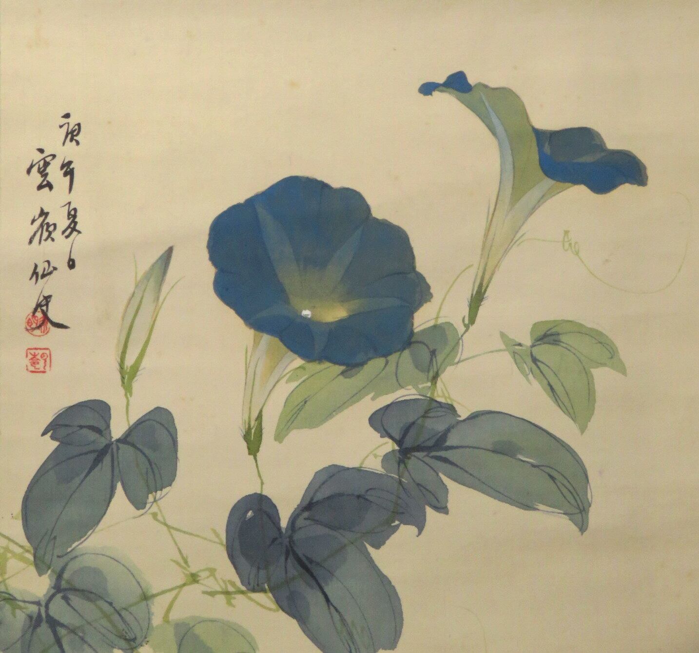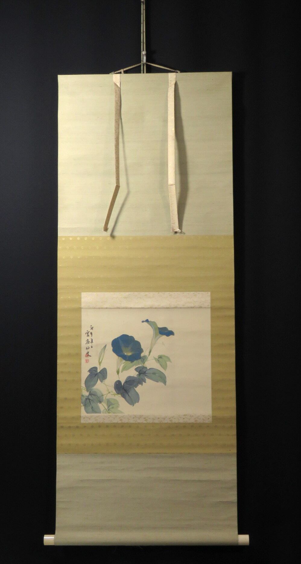 掛軸 赤松雲嶺 長夏清興(朝顔)図 半切横 物故作家掛軸 JY1224-9