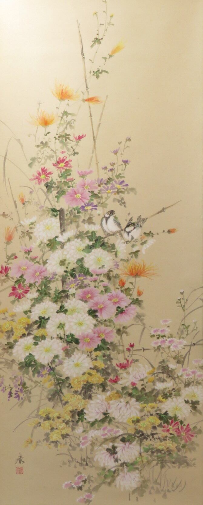 掛軸 小林康 小菊 尺五立 現代作家新作掛軸 JY1274