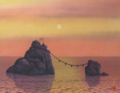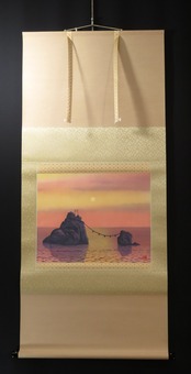 掛軸 原滄月 夫婦岩 尺八横 現代作家新作掛軸 JY1287-9