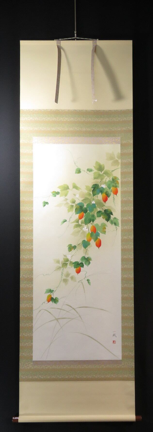 掛軸 遠田一成 烏瓜 尺五立 現代作家新作掛軸 JY1292
