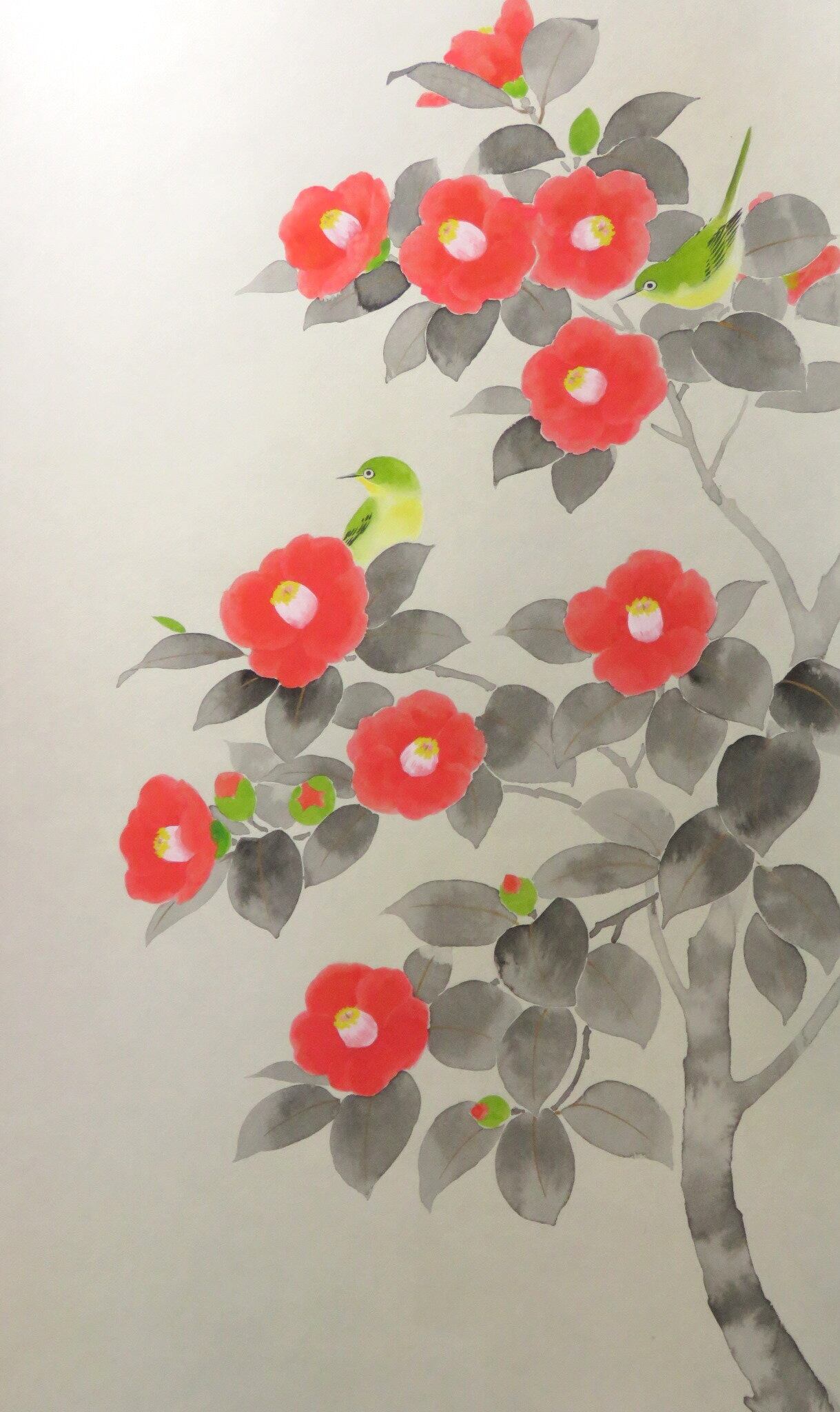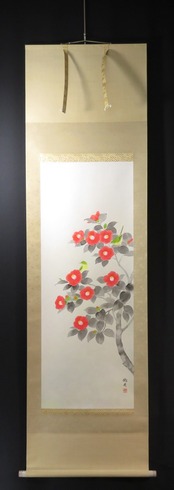 掛軸 島田稔明 紅椿 尺五立 現代作家新作掛軸 JY1300