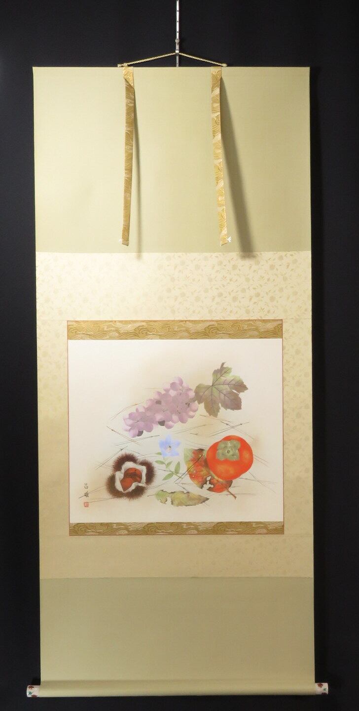 掛軸 宮本昌雄 錦秋讃果 尺八横 現代作家新作掛軸 JY1323