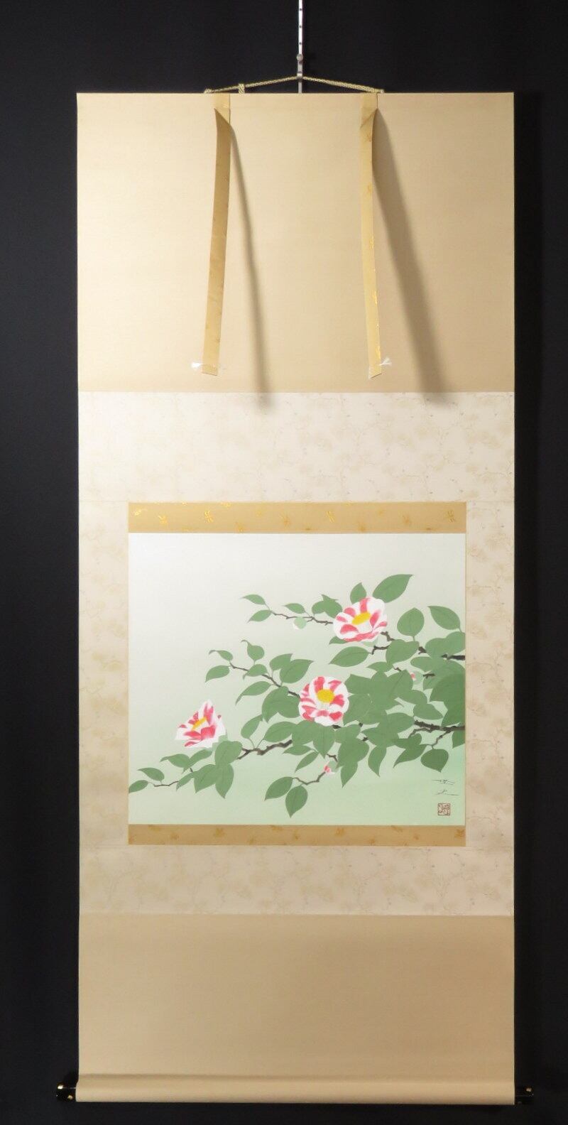 掛軸 大森隆史 姫椿 尺八横 現代作家新作掛軸 JY1326
