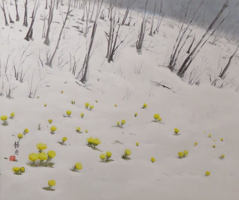 掛軸 塚下静庵 福寿草 尺八横 現代作家新作掛軸 JY1332