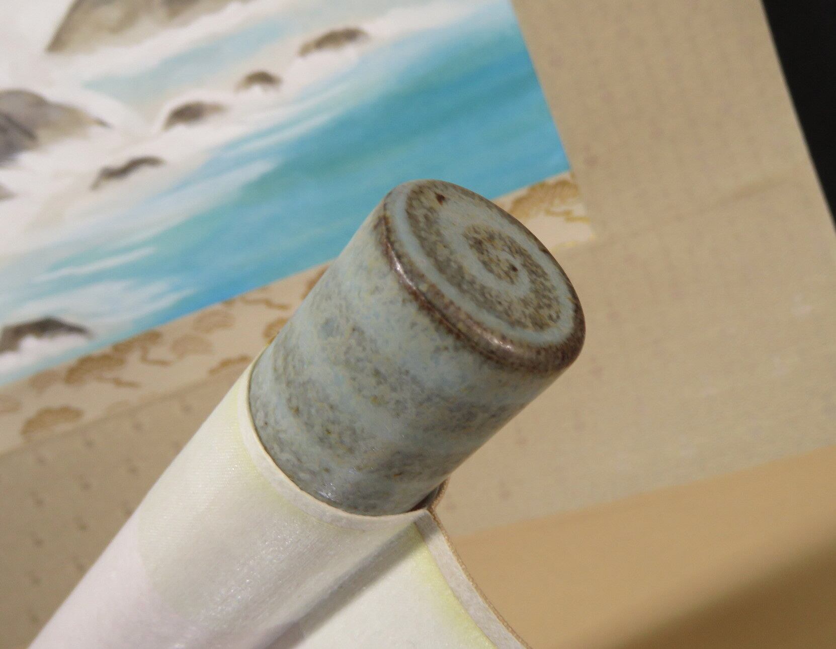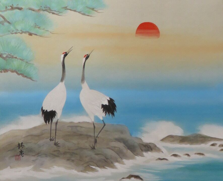 掛軸 塚下静庵 海辺双鶴 尺八横 現代作家新作掛軸 JY1333