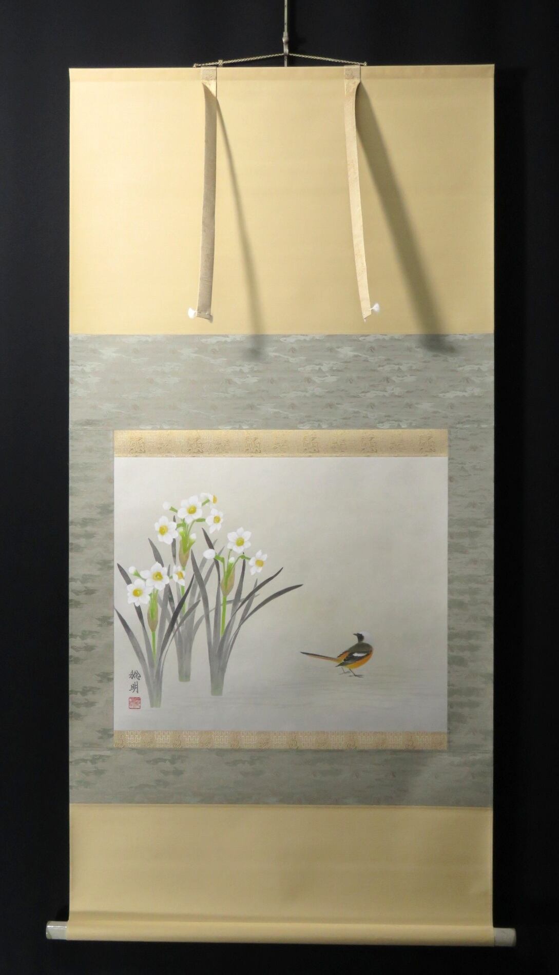 掛軸 島田稔明 水仙 尺八横 現代作家新作掛軸 JY1371