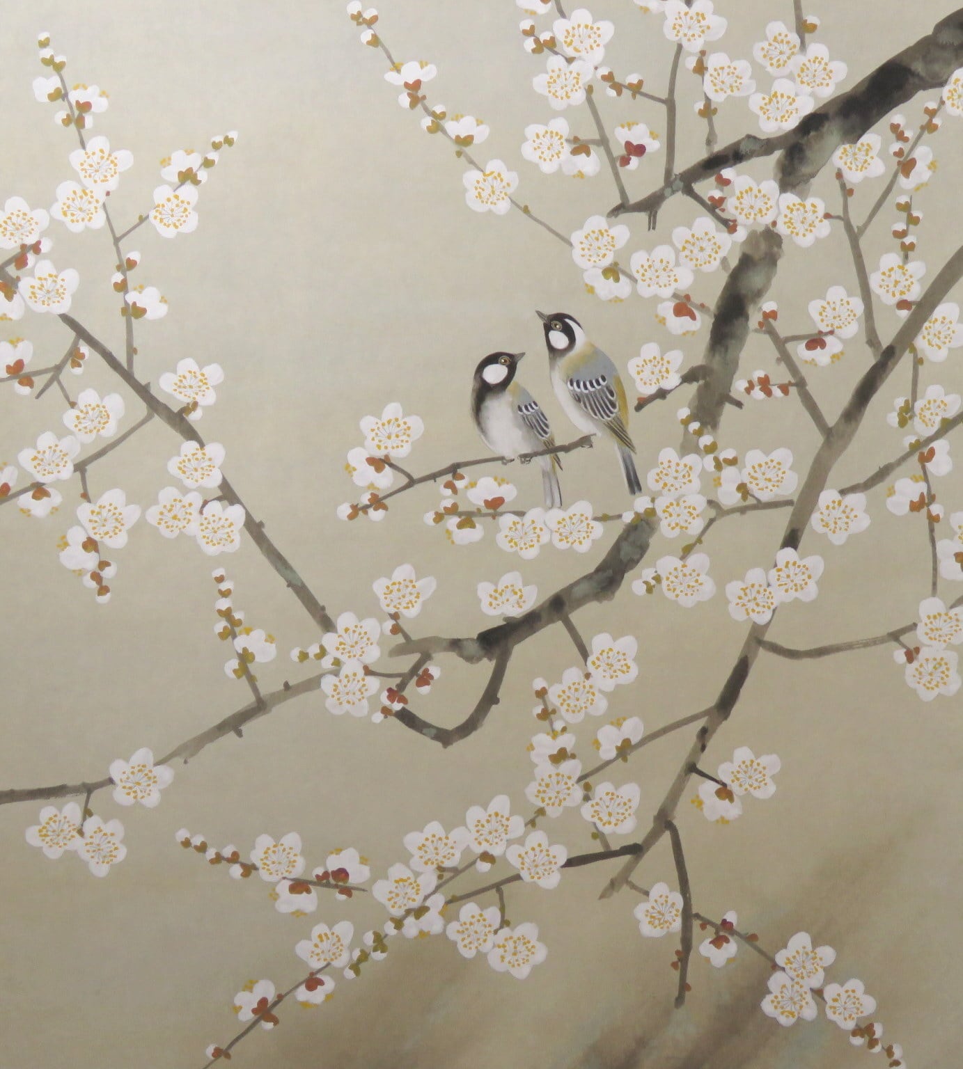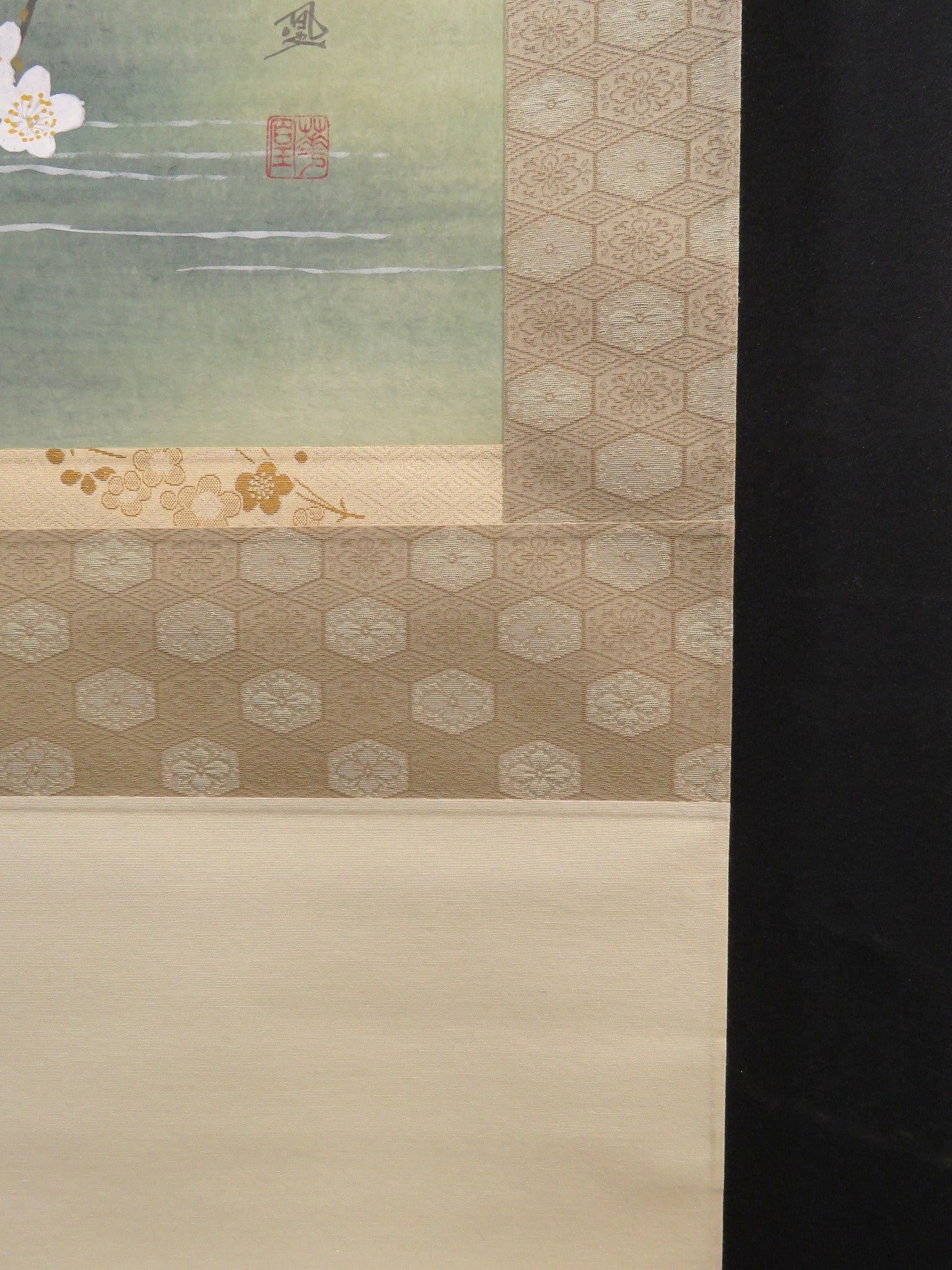 掛軸 出口華鳳 白梅 尺五立 現代作家新作掛軸 JY1384