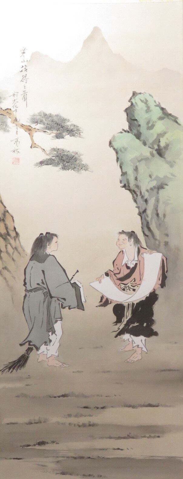 掛軸 小出陽祐 寒山拾得図 尺五立 現代作家新作掛軸 JY1389