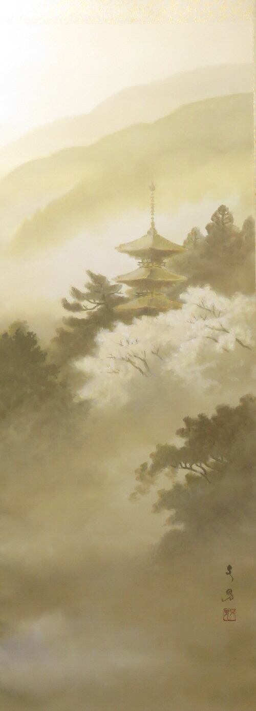 掛軸 竹角文男 桜塔 尺五立 現代作家新作掛軸 JY1405