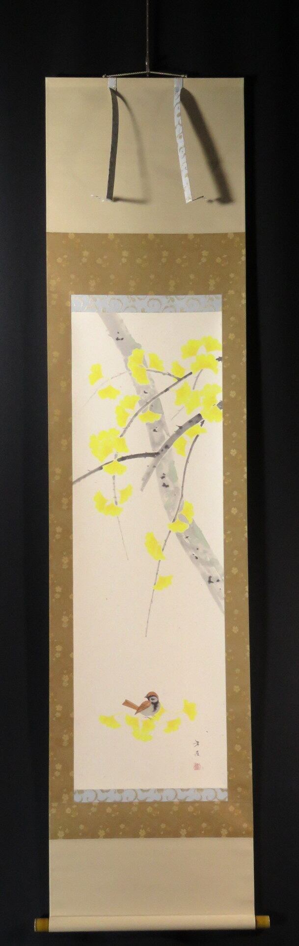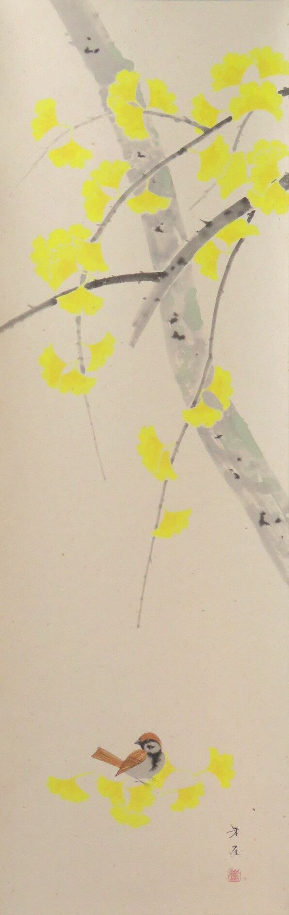 掛軸 永田朱雀 銀杏 半切立 現代作家新作掛軸 JY1424