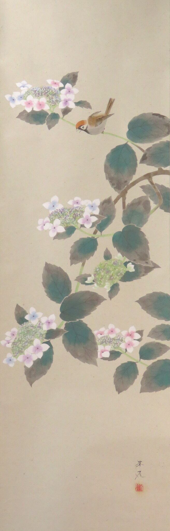 掛軸 永田朱雀 紫陽花 半切立 現代作家新作掛軸 JY1425