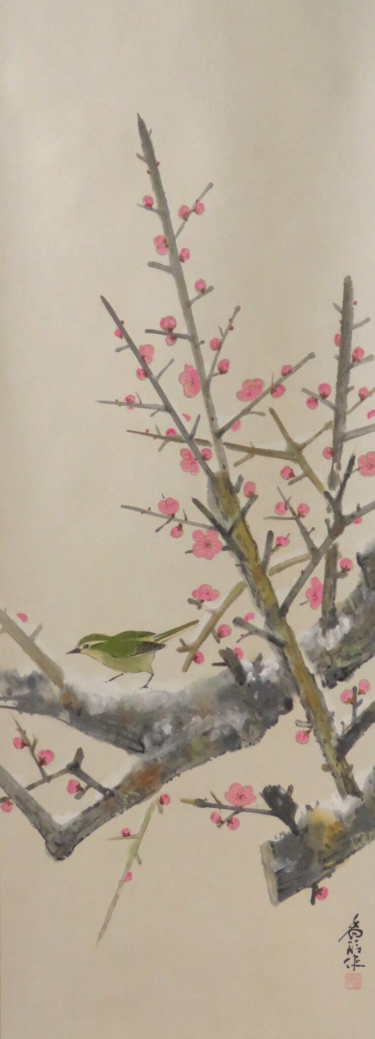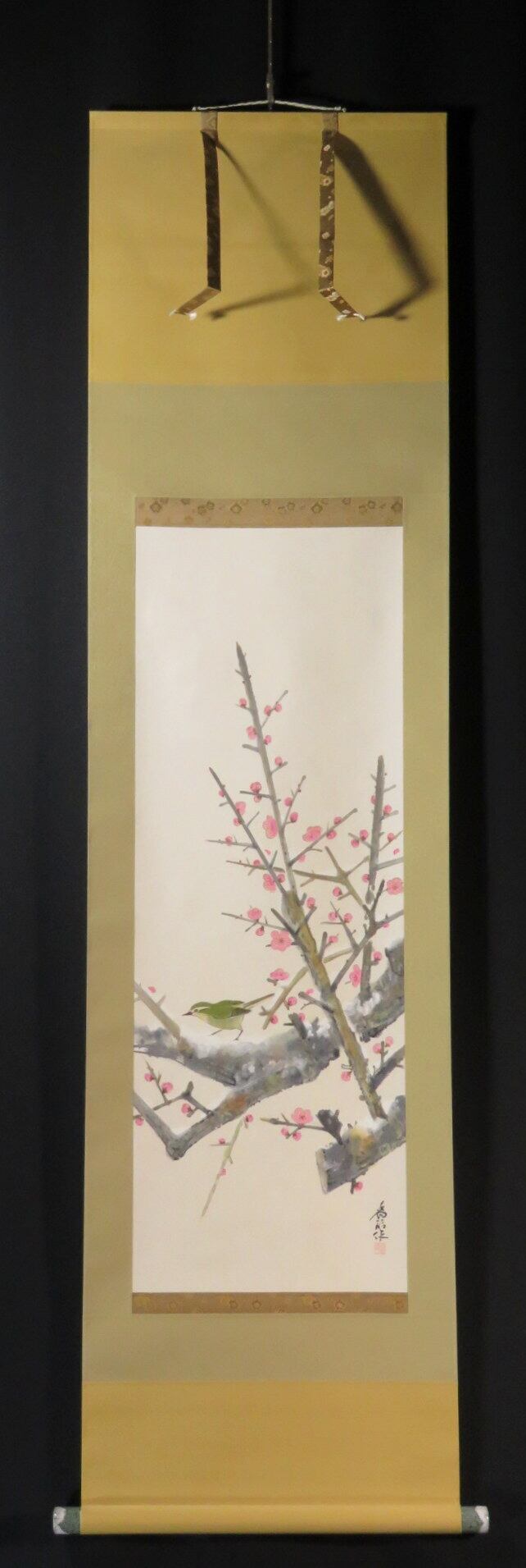 掛軸 鹿島香玲 雪中紅梅 半切立 現代作家新作掛軸 JY1426