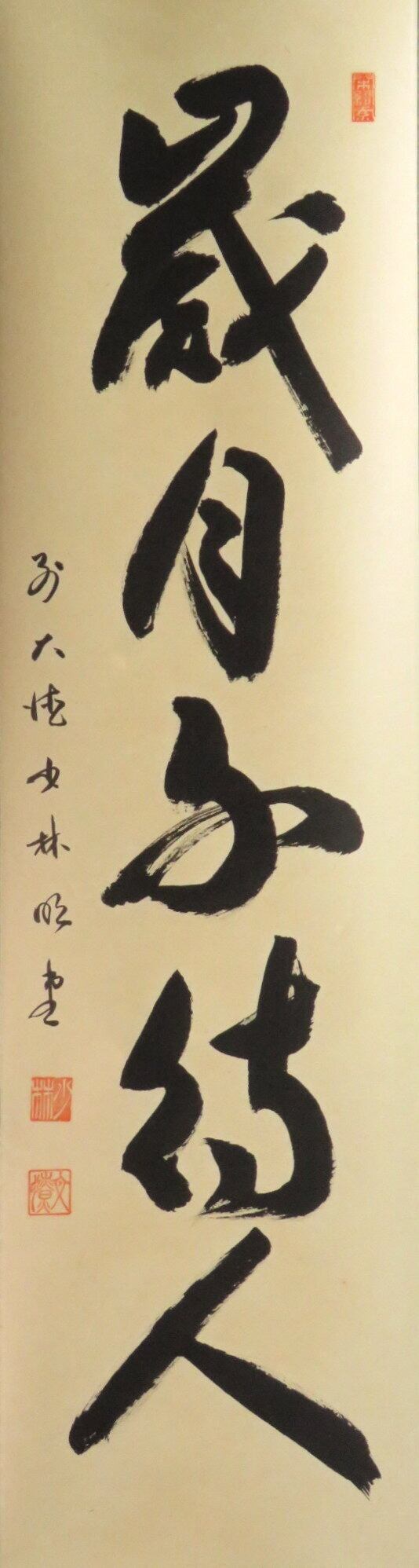 掛軸 臨済宗大徳寺派 少林寺 横井明堂和尚 一行書「歳月不待人」尺巾 現代作家新作掛軸 JY1428