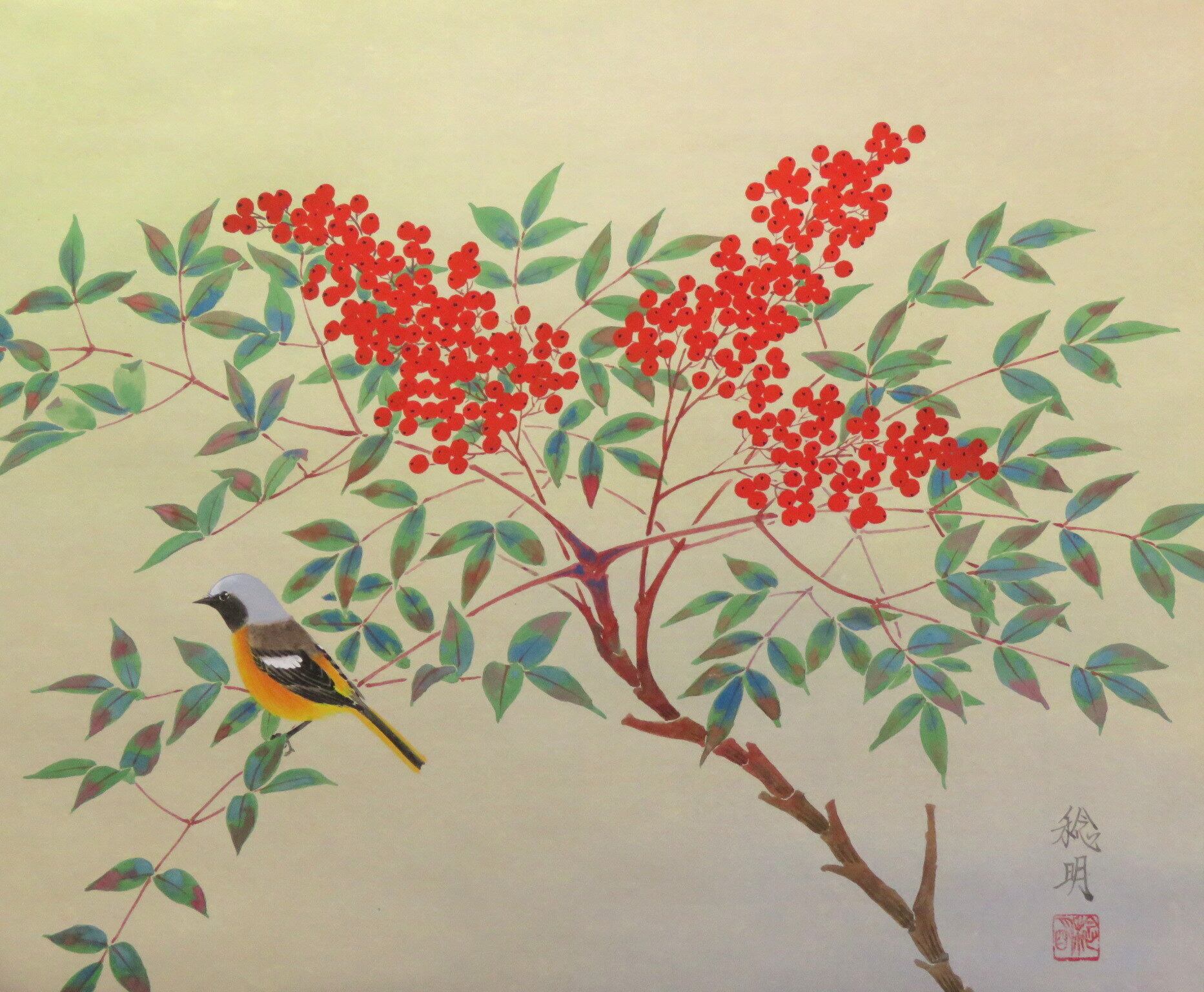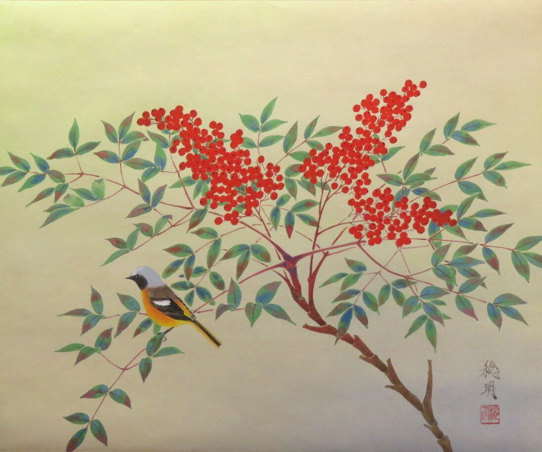 掛軸 島田捻明 南天 尺八横 現代作家新作掛軸 JY1469