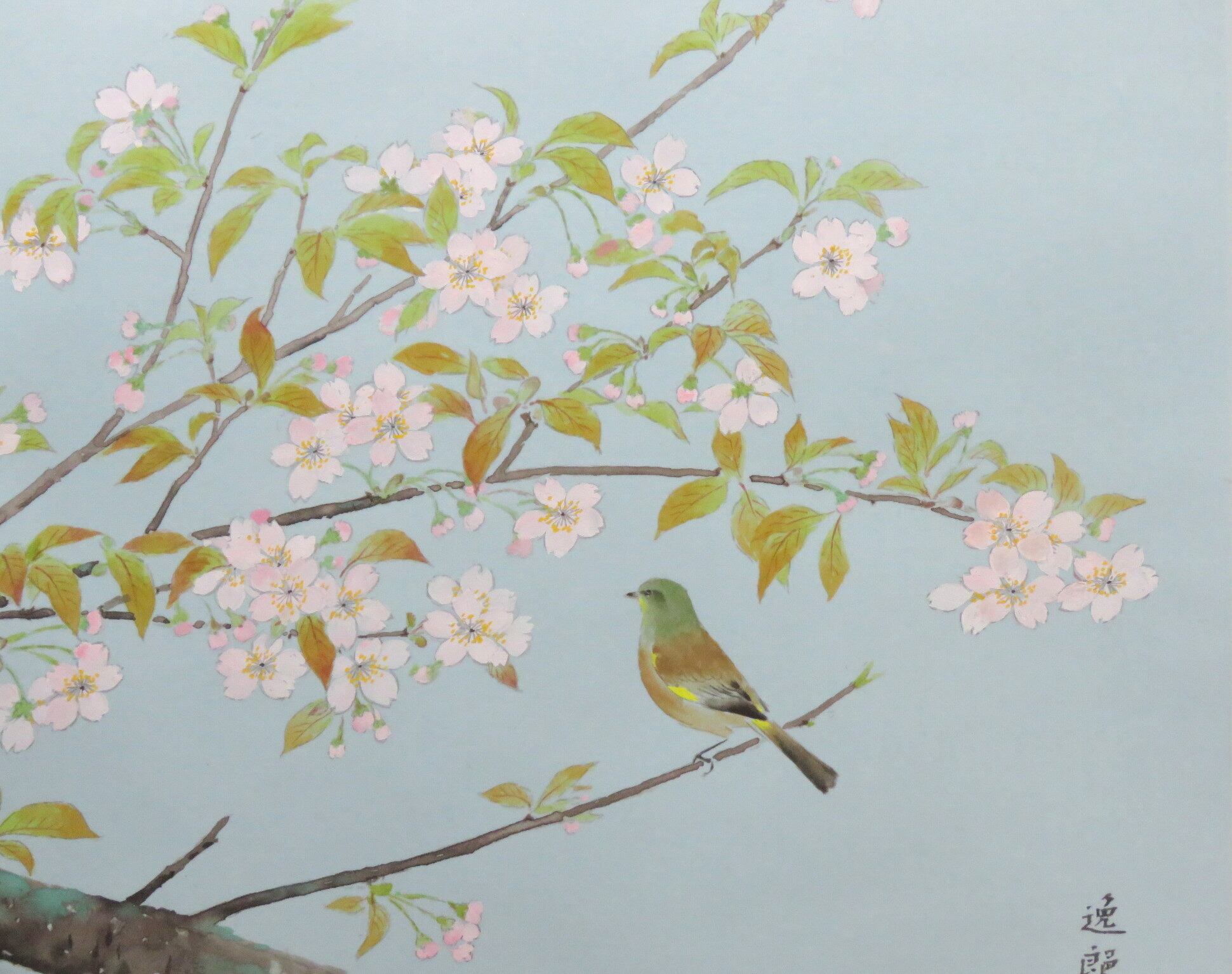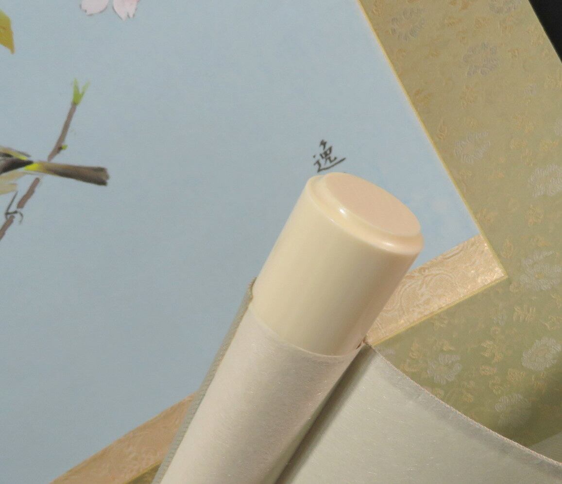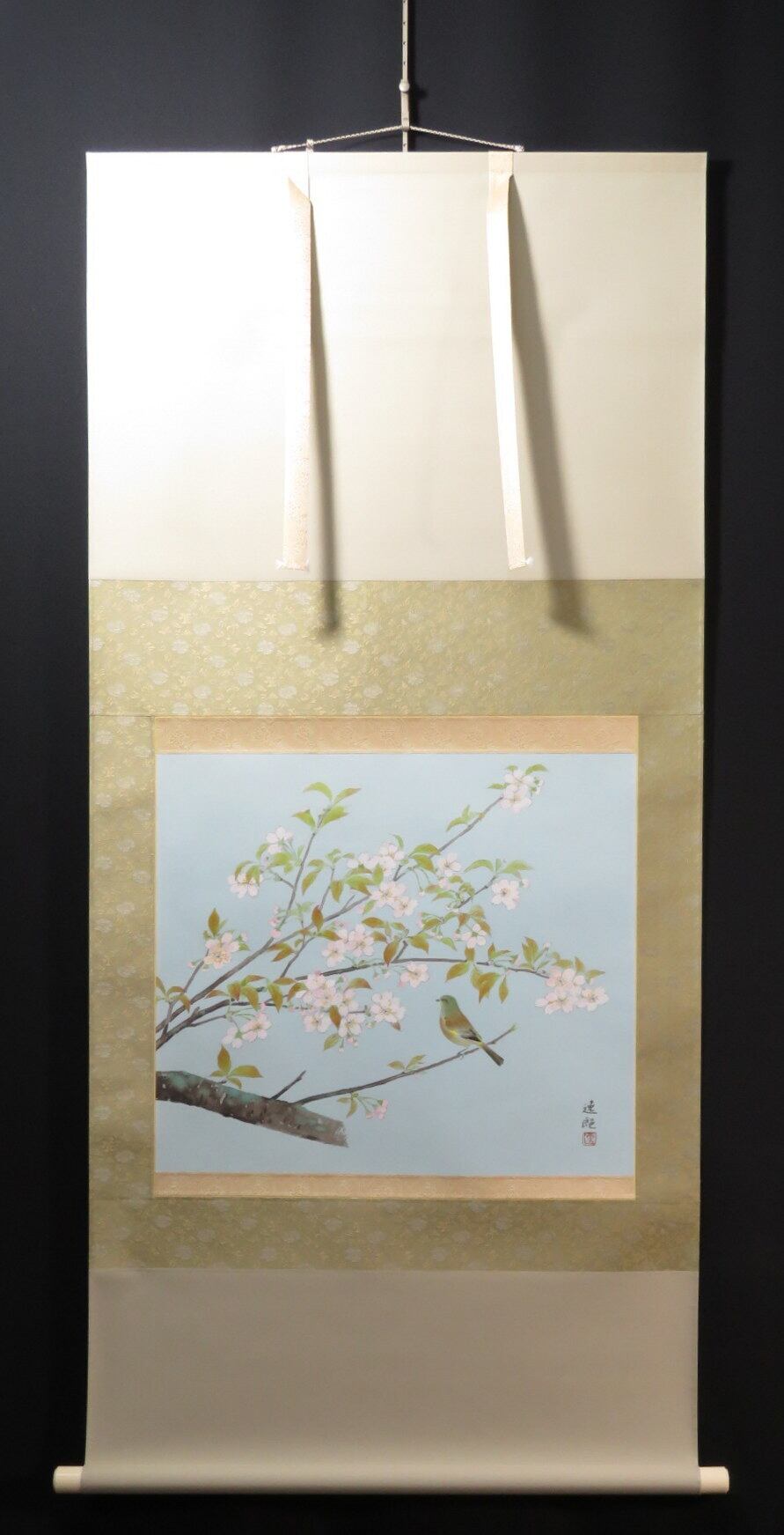 掛軸 内田逸郎 山桜(桜花小禽) 尺八横 現代作家新作掛軸 JY1474