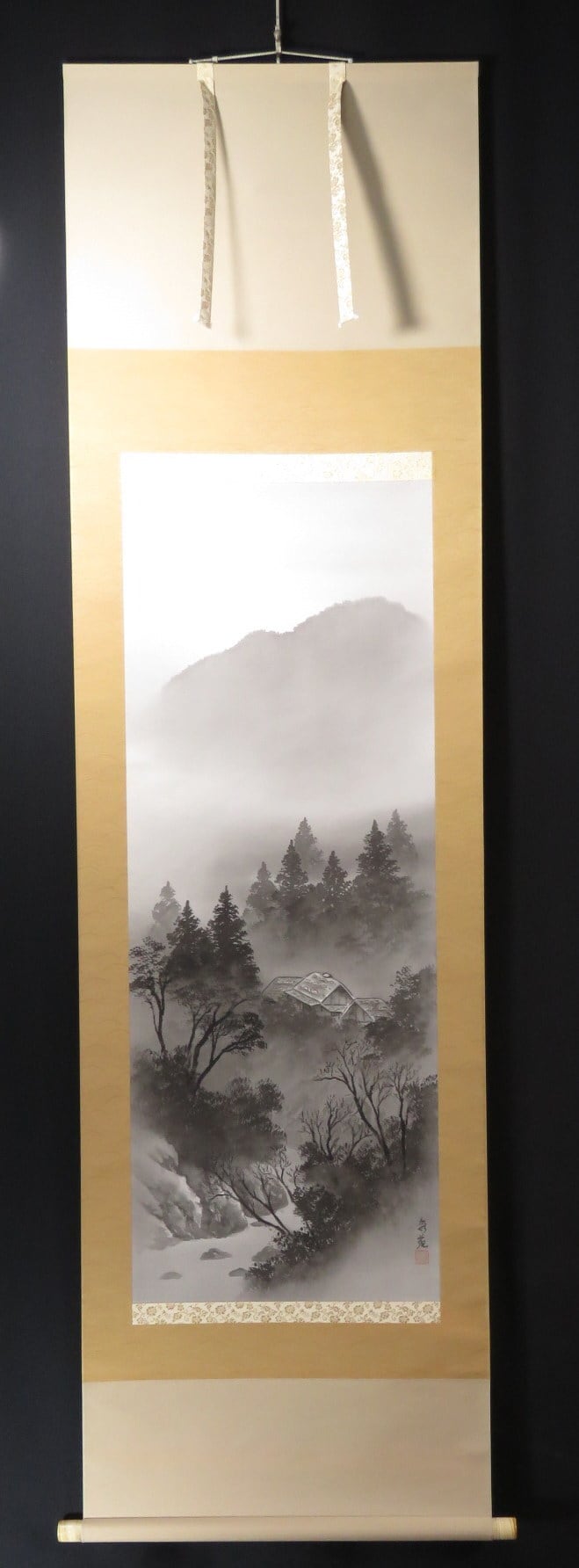 掛軸 吉井秀苑 水墨山水 尺五立 現代作家新作掛軸 JY1495