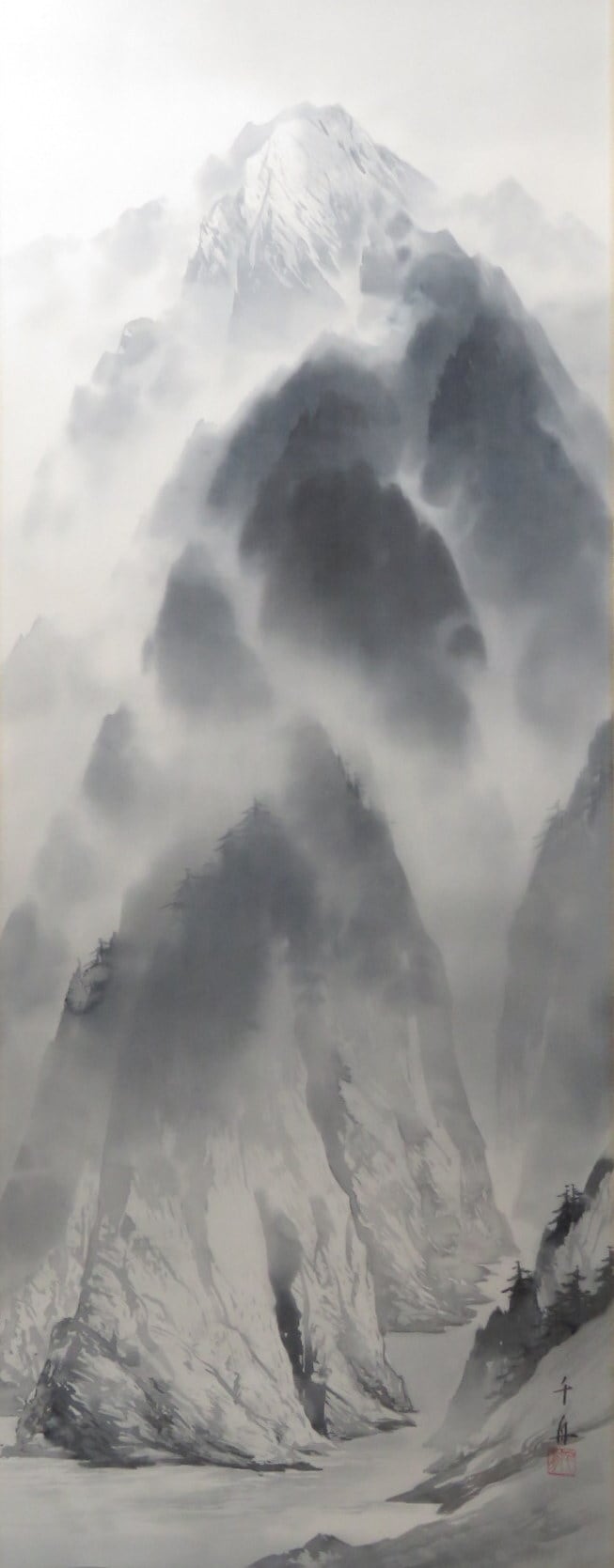 掛軸 長尾千舟 水墨山水 尺五立 現代作家新作掛軸 JY1507