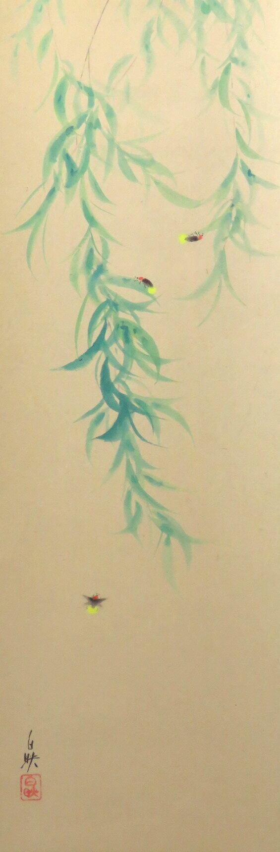 掛軸 久芳白映 蛍 尺巾 現代作家新作掛軸 JY1511