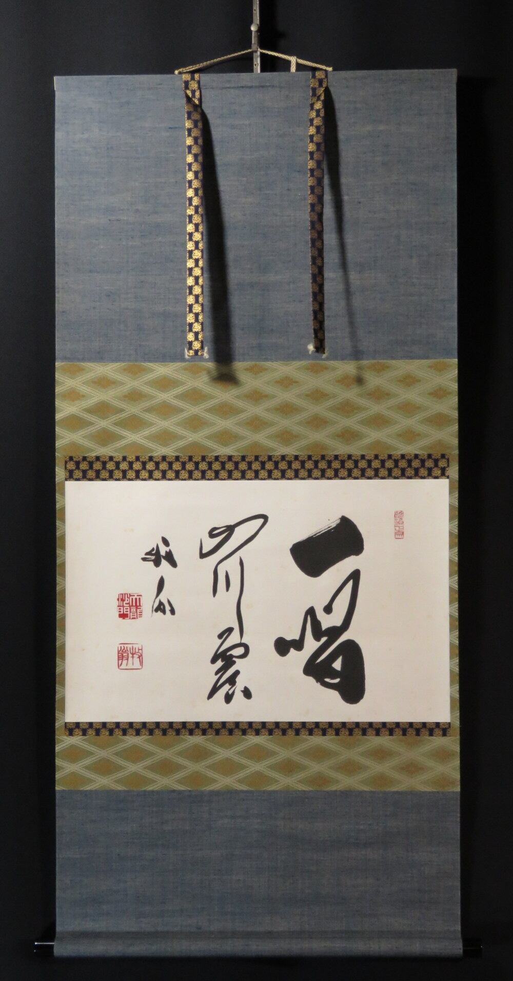 掛軸 臨済宗天龍寺派 管長 天龍寺241世 関牧翁 「一喝山川震」尺八横 物故作家掛軸 JY1529