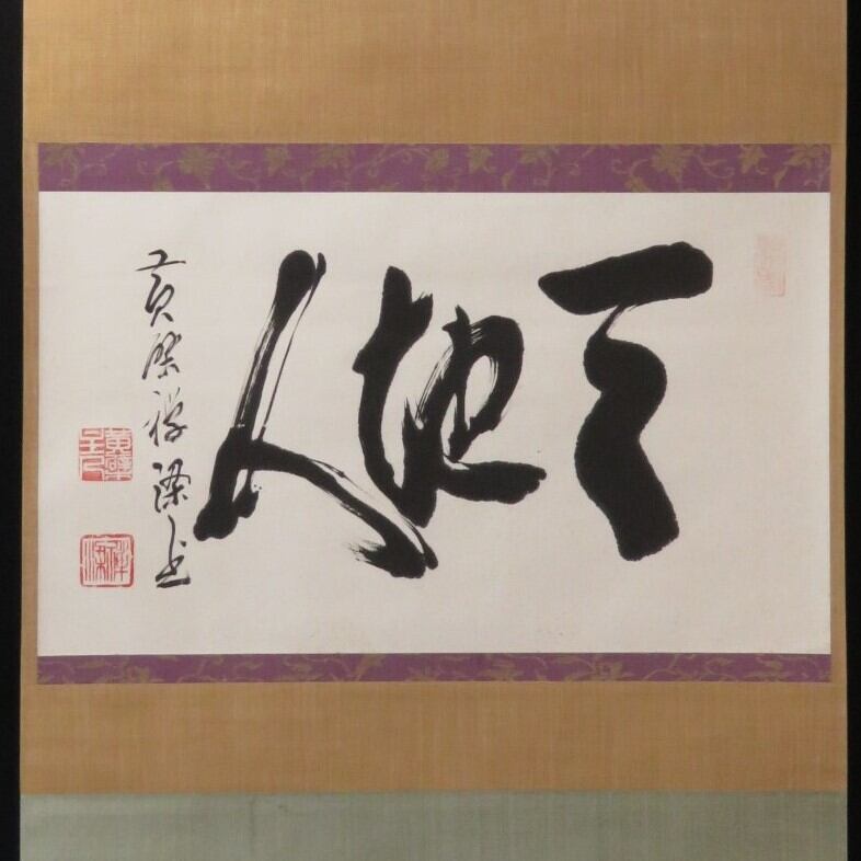 掛軸 黄檗山56代安部禅梁 横一行書「天地人」 尺八横 物故作家掛軸 JY1532
