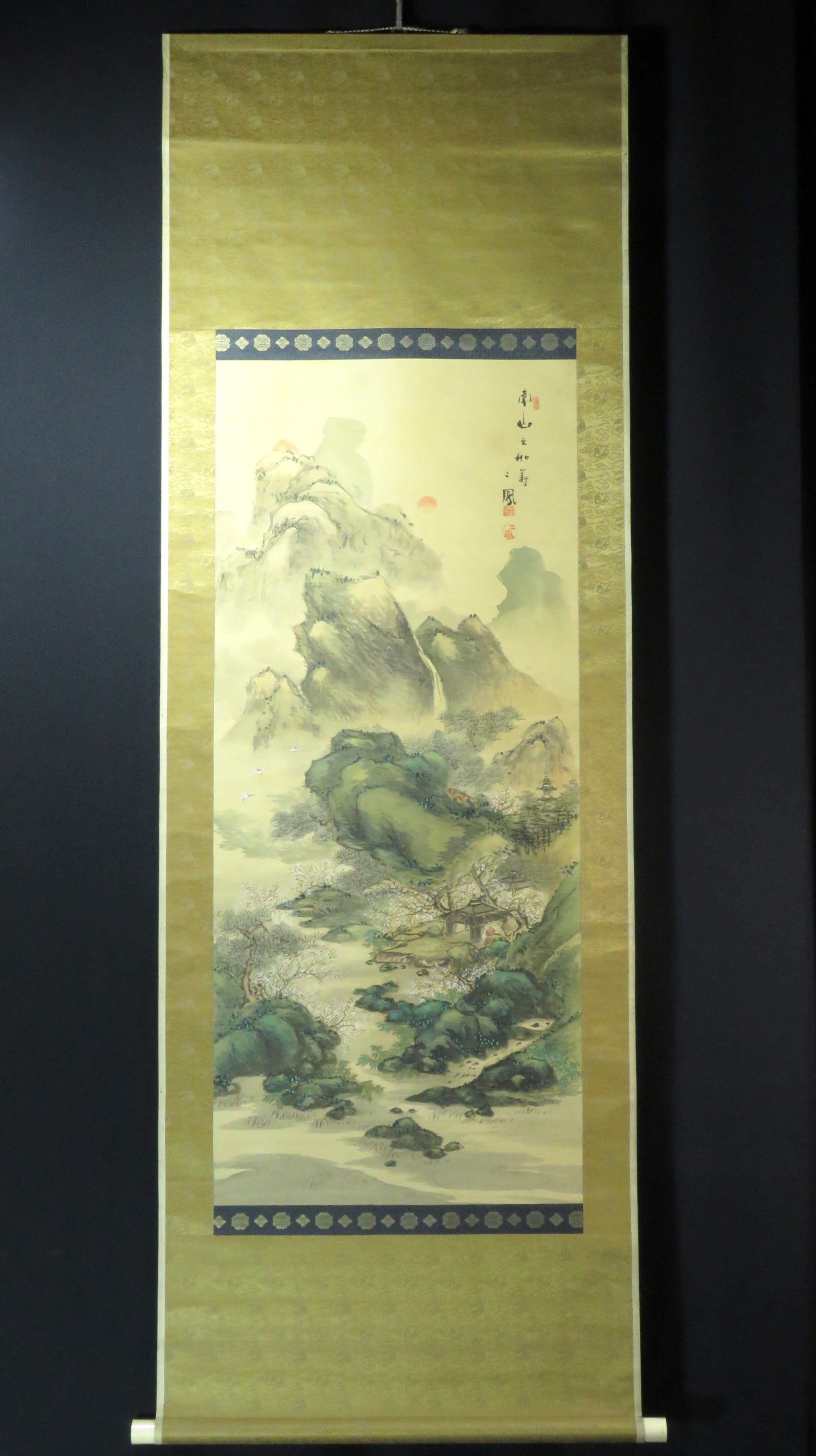 掛軸 森二鳳 蓬莱仙境図 尺八横 物故作家掛軸 JY1607
